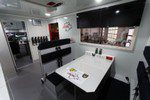 Im Aufbau befindet sich ein großer Besprechungsraum mit Tisch, Sitzbänken und Monitoren sowie ein abgetrennter Funkraum mit zwei Funkarbeitsplätzen. Der pneumatische Funkmast soll jederzeit eine gute Funkverbindung sicherstellen. Für Kommunikation, Recherche, Datenaufbereitung und Visualisierung stehen mehrere PCs und Laptops und mobiles Internet zur Verfügung. Mit einem DIN A3 Multifunktionsgerät ist das Drucken, Faxen, Kopieren und Scannen an der Einsatzstelle möglich. An der Fahrzeugaußenseite kann ein großer LCD-Bildschirm angebracht werden, um für Lagebesprechungen Einsatzdaten darzustellen. Die LED-Umfeldbeleuchtung macht das Arbeiten in der Nacht zum Tag. Eine Markise schützt im Außenbereich vor Sonne, Regen und Schnee. Mit der digitalen Wetterstation können aktuelle Wetterdaten ermittelt werden, beispielsweise um bei Bränden oder Gasaustritten die mögliche Ausbreitung abzuschätzen. Betrieben wird die ganze Technik über ein entnehmbares Notstromaggregat mit 12 kVa.