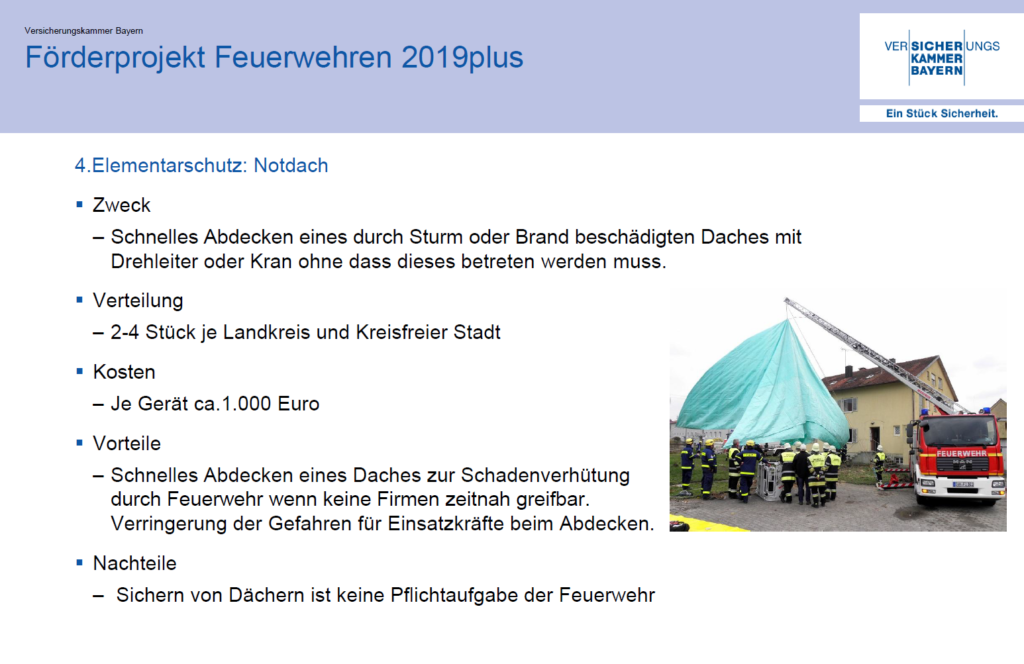 Die Versicherungskammer Bayern hat für jeden ILS-Bereich jeweils 3 Notdächer zur Verfügung gestellt.