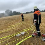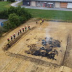 Am Nachmittag konnten dann die 31 Kameraden der Schwarzenbacher Wehr und einiger umliegenden Gemeinden das theoretisch erlernte in die Praxis umsetzen. Die Übungsfläche und trockenes Stroh, wurde von Landwirt Willi Kraus im Bereich des Wertstoffhofes zur Verfügung gestellt.