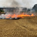 Das Thema der ersten Station beinhaltete zunächst die Vorstellung der einzelnen Handwerkzeuge und deren Einsatzmöglichkeiten. Im Anschluss wurde ein sog. Wundstreifen angelegt. Danach ein schmaler Streifen mit Stroh angezündet und dieser dann mit Werkzeugen, unter anderem Hacken, Schaufeln und der klassischen Feuerpatsche, bekämpft. Unterstützt wurden diese Maßnahmen mit dem Löschrucksack, der Rund 20 Liter fasst.