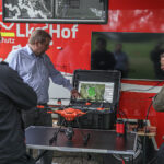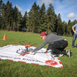 Start- und Ladeplatz werden mit einer Landeplane und Faltkegeln gekennzeichnet. Das Flugpersonal trägt besondere Überwesten.