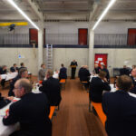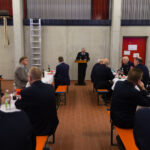 Um die Corona Hygienebestimmungen einhalten zu können, fand die Jubiläumsfeier nur im kleinen Kreis statt. in der Fahrzeughalle der Freiwilligen Feuerwehr Oberkotzau statt. Die ehemaligen und aktuellen Ausbilder mit Ehepartner, die Führungs- und Ehrenführungsdienstgrade sowie Landrat Dr. Oliver Bär, Oberkotzaus zweiter Bürgermeister Erich Pöhlmann als Gastgeber sowie ein Vertreter des Landratsamts aus dem Sachgebiets 301 waren eingeladen.
