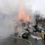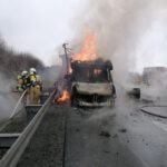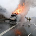 Der Fahrer konnte sein Fahrzeug noch auf der Standspur abstellen und das Fahrzeug unverletzt verlassen. Als die Feuerwehr an der Einsatzstelle eintraf, befand sich der mit Möbeln beladene Transporter bereits im Vollbrand. Trotz des massiven Einsatzes von F500 und Wasser konnte nicht verhindert werden, dass das Fahrzeug total ausbrannte und ebenso wie die Ladung ein Raub der Flammen wurde.