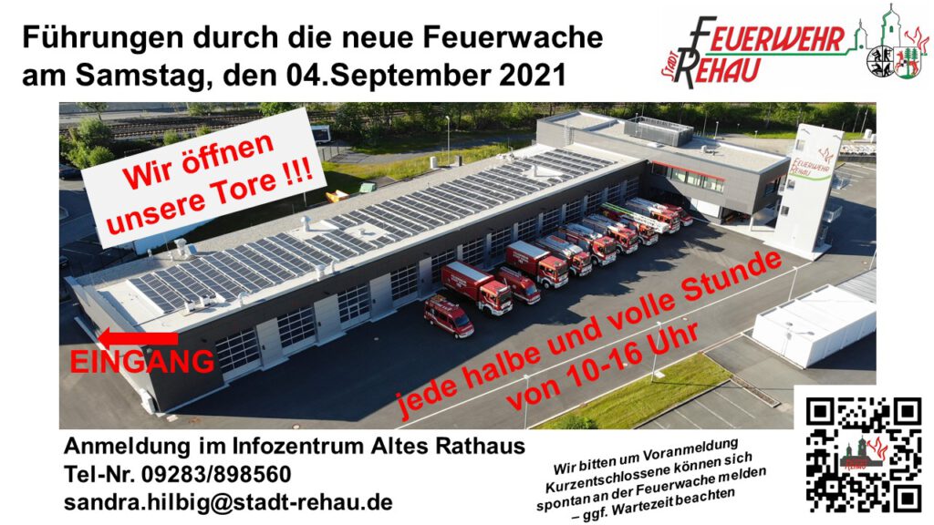 Dennoch soll allen Interessierten Bürgerinnen und Bürgern aus Rehau und Umgebung die Möglichkeit geboten werden, die neue Rehauer Feuerwache zu besichtigen.