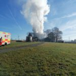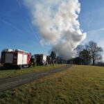 Die Rauchentwicklung war bereits aus großer Entfernung zu sehen. Der eintreffende Einsatzleiter ließ die Alarmstufe umgehend auf „B4 Brand Stall/Scheune“ erhöhen was die Alarmierung der Feuerwehr Jehsen und Münchberg sowie die UG-ÖEL (Unterstützungsgruppe Örtliche Einsatzleitung) nach sich zog.