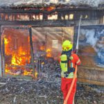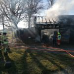 Vor Ort war ein Brand in einer Werkstatt ausgebrochen, welche bereits in voller Ausdehnung brannte. Sofort wurden mehrere Trupps der eintreffenden Feuerwehren aus Helmbrechts, Münchberg und Ahornberg mit schweren Atemschutz zur Brandbekämpfung eingesetzt. Von einem nahegelegenen Teich wurde eine Förderleitung zum Brandobjekt verlegt. Mithilfe mehrerer C-Rohre konnte das Feuer auf die Garage begrenzt und ein Übergreifen auf das restliche Stallgebäude vermieden werden. Das Feuer wurde schnell gelöscht, jedoch zogen sich die Nachlöscharbeiten noch einige Zeit hin da die Werkstatt als einsturzgefährdet galt und somit nur Nachlöscharbeiten von außen durchgeführt werden konnten.