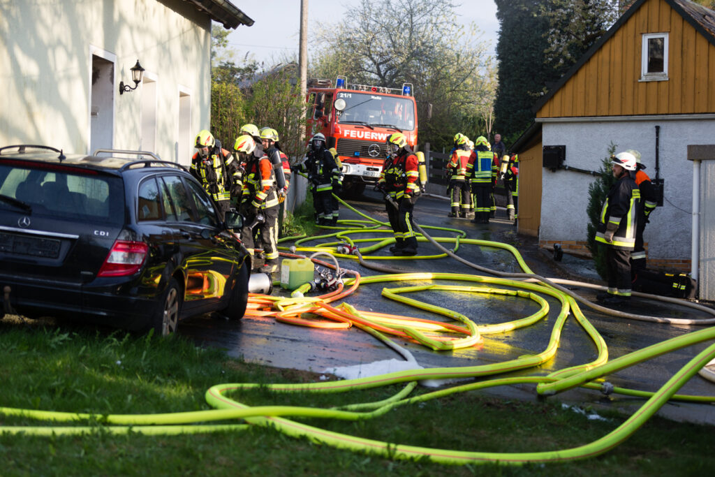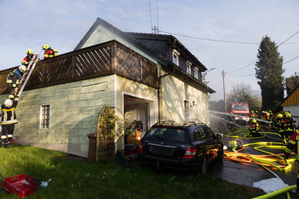 Pulsierender Rauch quoll aus dem Inneren – ein Alarmsignal für eine kurz bevorstehende Durchzündung von Rauchgasen. Die Feuerwehren starteten unter schwerem Atemschutz einen Löschangriff, konnten die Durchzündung jedoch nicht mehr verhindern. In der Folge stand das Erdgeschoß komplett in Flammen und das Feuer breitete sich auch ins Obergeschoß aus.
