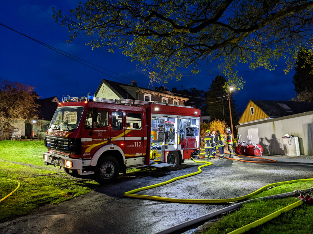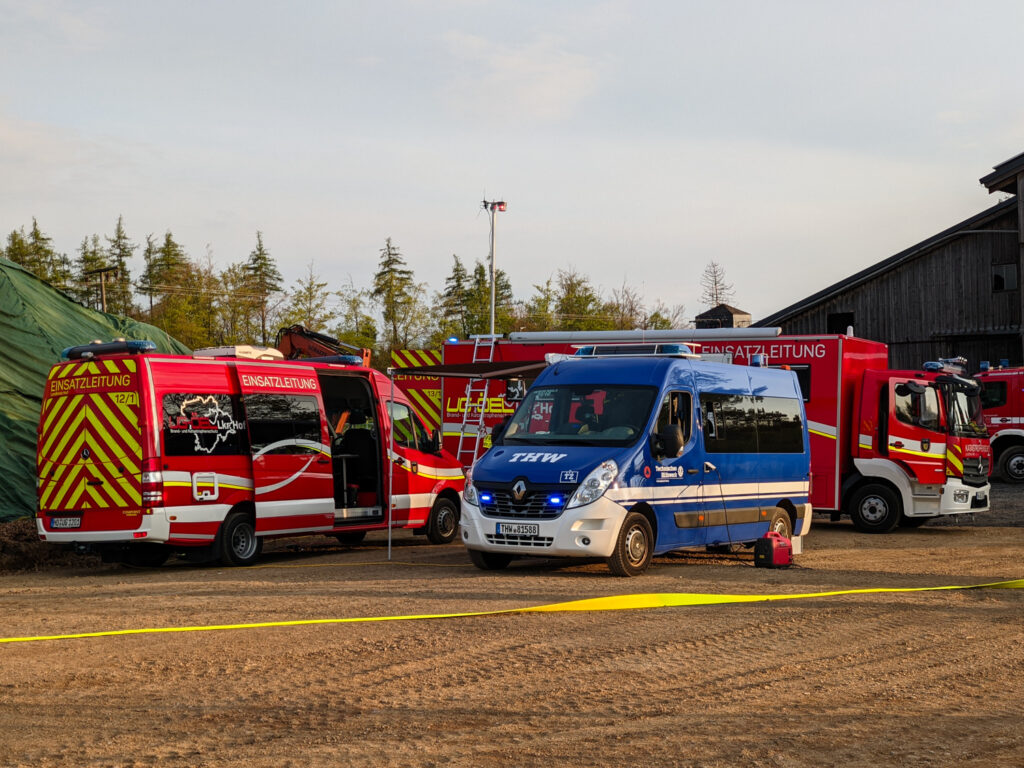 Nach etwa zwei Stunden konnte nach und nach begonnen werden die Kräfte vor Ort zu reduzieren. Über Nacht wurde eine Brandwache gestellt. Das Technische Hilfswerk unterstützte bei der Ausleuchtung der Brandstelle.