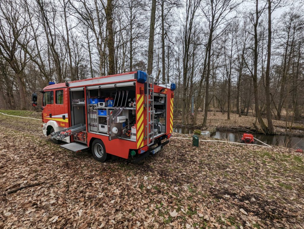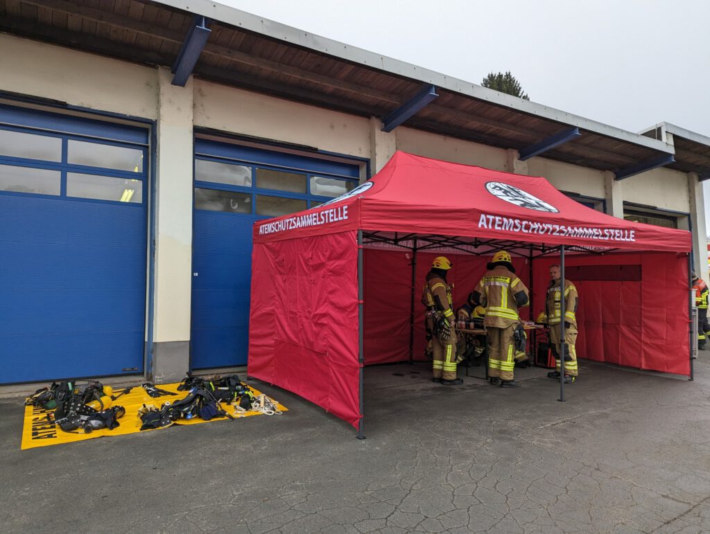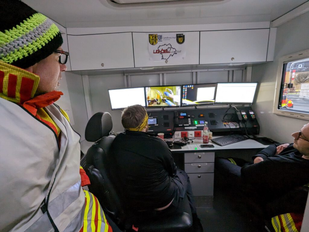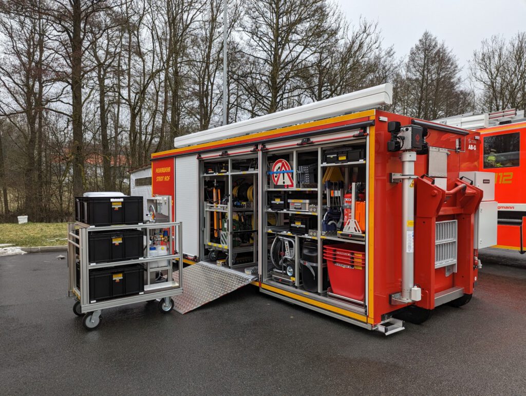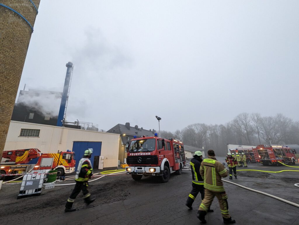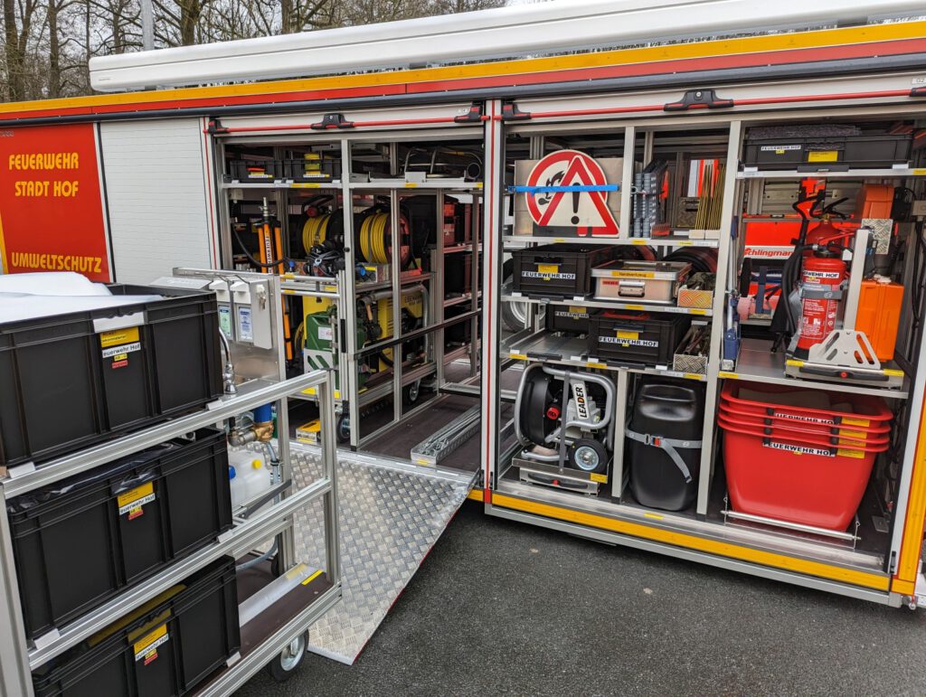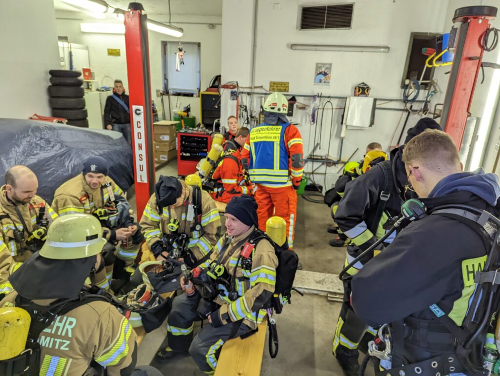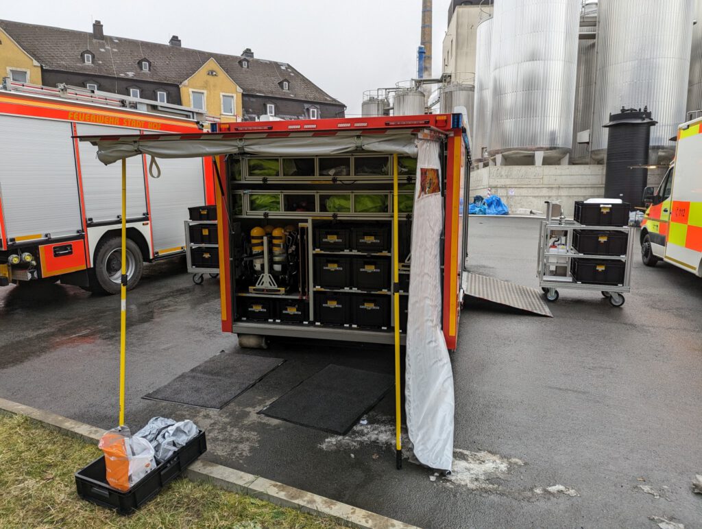 Die Feuerwehren wurden am 03.03.2023 um 04:18 Uhr wegen einer ausgelösten Brandmeldeanlage in einer Firma in Schwarzenbach an der Saale alarmiert. Beim Eintreffen teilten Mitarbeiter mit, es käme Rauch aus einem Kesselhaus. Ein Trupp ging unter Atemschutz zur Erkundung vor. Nachdem im Kesselhaus kein Brand festgestellt werden konnte, arbeitete man sich in die angrenzenden Räumen vor, wo schließlich eine brennende Maschine vorgefunden wurde. In dem Raum befanden sich außerdem mehrere 1000 Liter IBC-Behälter mit Gefahrenstoffen, von denen einer durch den Brand bereits stark beschädigt und ausgelaufen war.