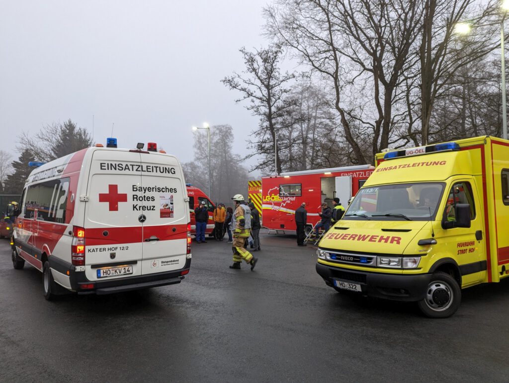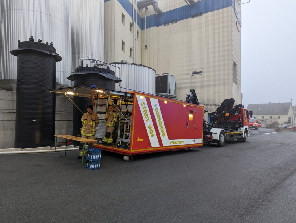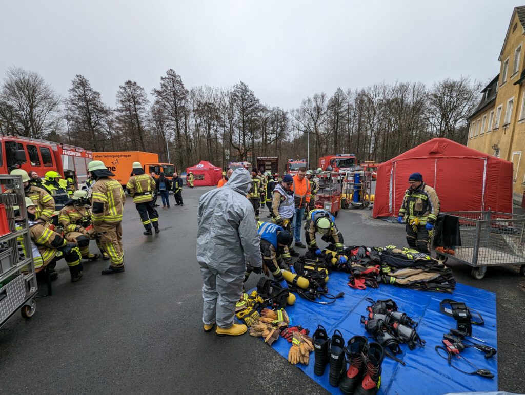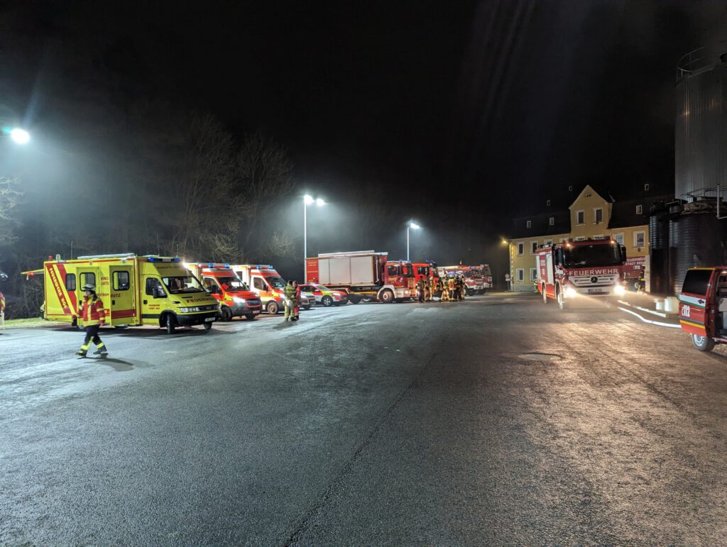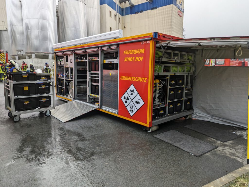Aufgrund der geänderten Lage wurde die Alarmstufe auf „Brand Chemie“ erhöht, wodurch ein Großaufgebot an Feuerwehrkräften aus dem Landkreis und der Stadt Hof alarmiert wurde, unter anderem mit Spezialausrüstung für Chemieunfälle.