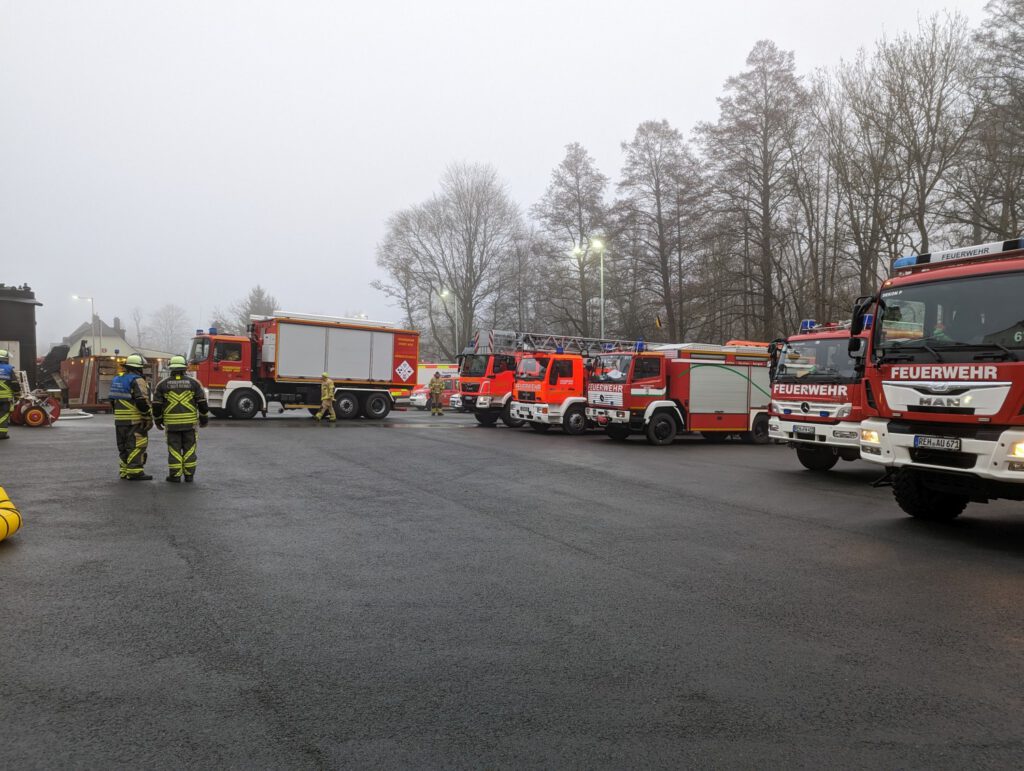 Erst gegen Mitternacht, und somit nach rund 20 Stunden, konnten die letzten Einsatzfahrzeuge wieder einrücken. In der Spitze waren über 250 Einsatzkräfte gleichzeitig vor Ort. Auch von Polizei und Rotem Kreuz waren Spezialkräfte für Chemieunfälle vor Ort. Das Technische Hilfswerk unterstützte bei der Verpflegung, Ausleuchtung und leichtem CSA.