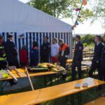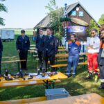 Die Feuerwehren nahmen sich viel Zeit und bauten interessante Stationen auf, die auch praxisnah mit Leben gefüllt wurden. In der Station 1 baute die Feuerwehr Förmitz einen Faltbehälter auf und füllte ihn mit einer Leitung vom Förmitzspeicher her. Die Station 2 war vor allem für die Führungskräfte gedacht. Hier wurde das Taktikschema und der Planungsvorgang im Einsatz gezeigt. Diese Station übernahm der Schwarzenbacher Kommandant Roland Fuchs. Bei der dritten Station ging es um den Digitalfunk. Es wurden die Grundlagen wie Kanalwechsel durchgeführt und der allgemeine Sprechfunk trainiert. Das Thema Vegetationsbrände wurde von den Feuerwehren Förbau und Seulbitz dargestellt. Es kam ein Löschrucksatz zum Einsatz, Feuerpatschen und alle sonstigen Gerätschaften, die aufgrund der Klimaentwicklung immer mehr in den Fokus rücken dürften. Die Drohnenpiloten der Schwarzenbacher Feuerwehr stellten dann diese vor und führte auch einige Flüge über das Festgelände vor. Die sechste und letzte Station hatte das Thema Schlauchbrücken. Es wurde der Umgang, der Einsatz und die Integration in den Verkehr anschaulich besprochen.