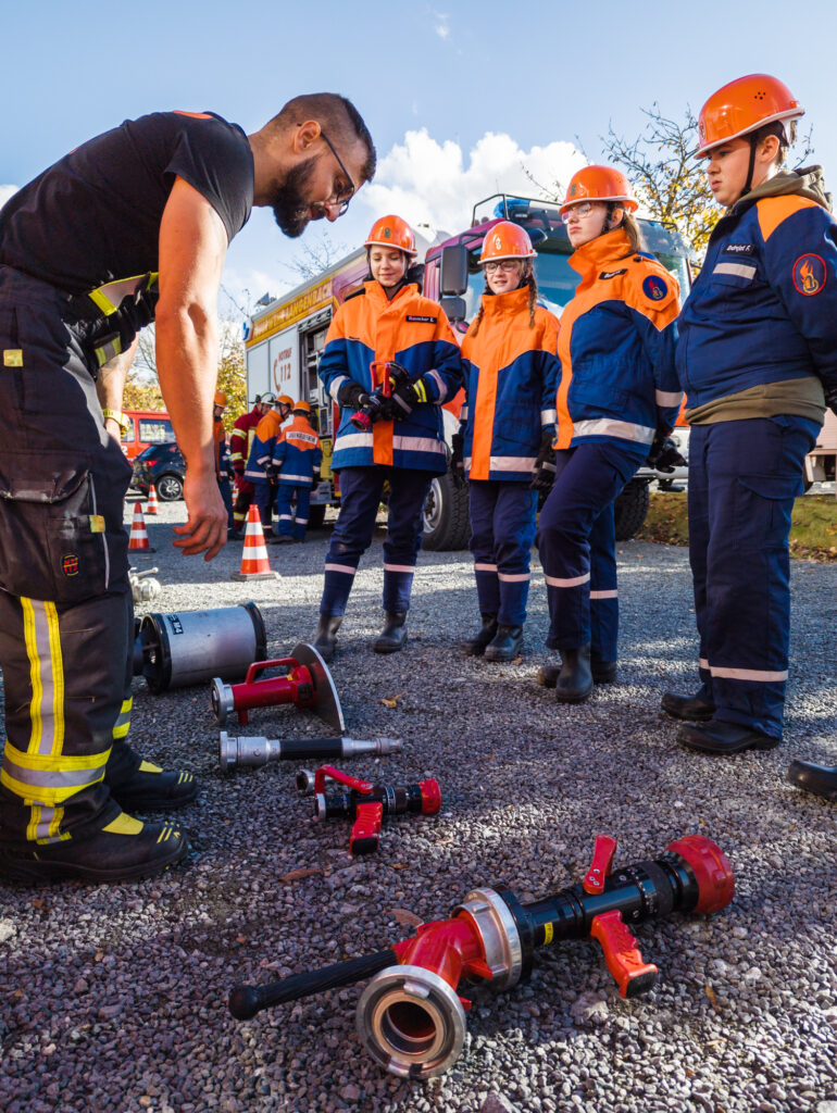 Je Stufe galt es unterschiedliche Aufgaben zu absolvieren. Bei der Stufe I mussten drei Knoten oder Stiche angefertigt, ein C-Schlauch möglichst gerade ausgeworfen, ein Unterflurhydrant mittels Hinweisschild aufgefunden und eine Krankentrage bereitgestellt werden. Außerdem galt es, die Zusammensetzung eines Notrufs und die Handhabung von Verteiler und Strahlrohren zu erklären.