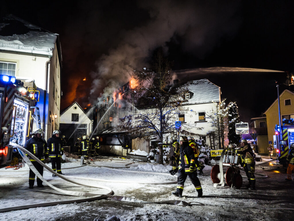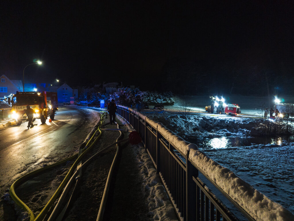 Am 04.12. um 20:41 Uhr wurden die Feuerwehren mit dem Alarmstichwort B4 – Brand Scheune – nach Weissdorf alarmiert. Direkt im Ortskern stand eine Scheune bereits in Vollbrand. Das Feuer drohte auf auf weitere angrenzende Gebäude, darunter ein Wohnhaus, überzugreifen.