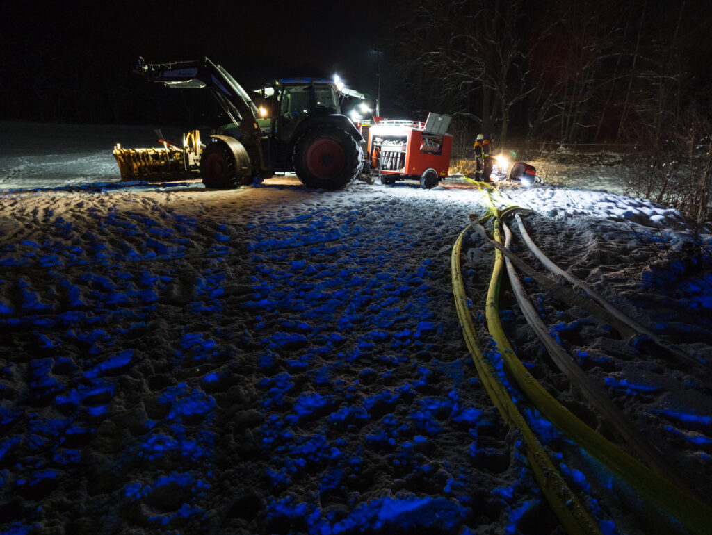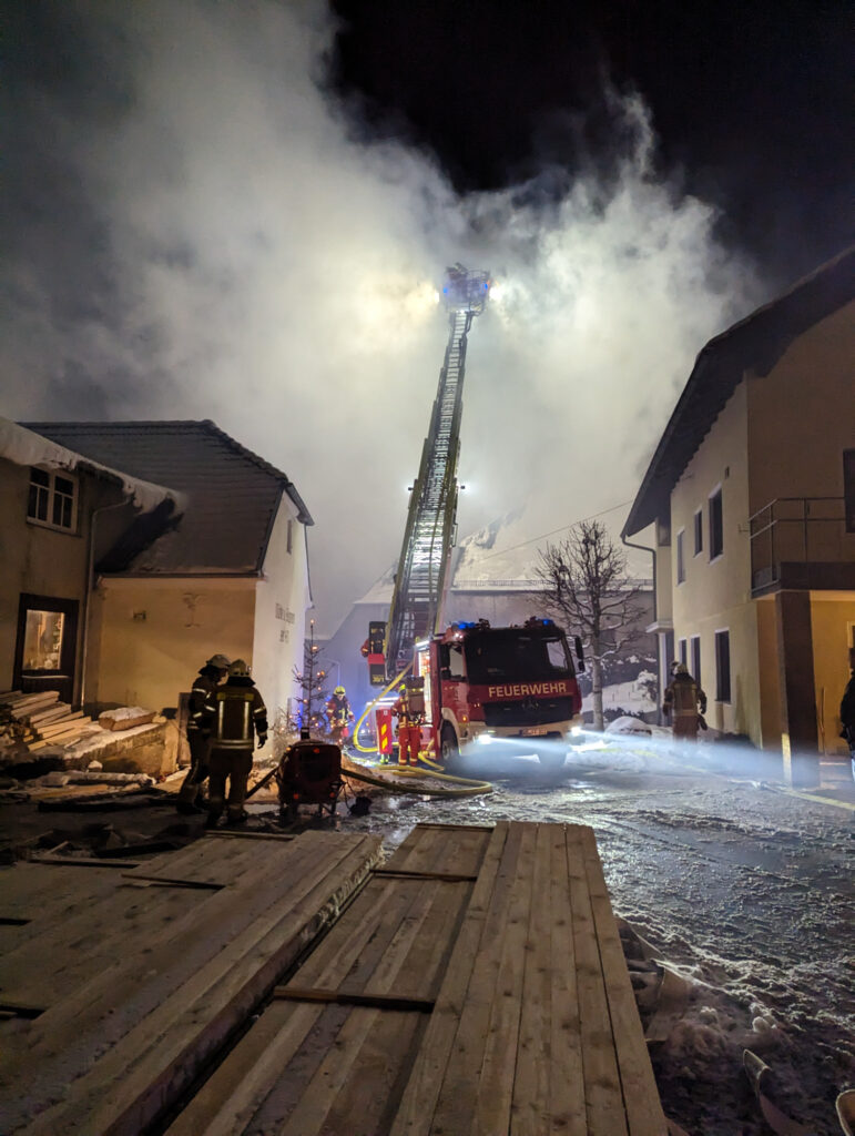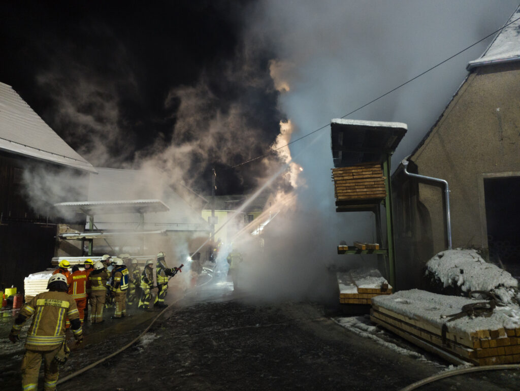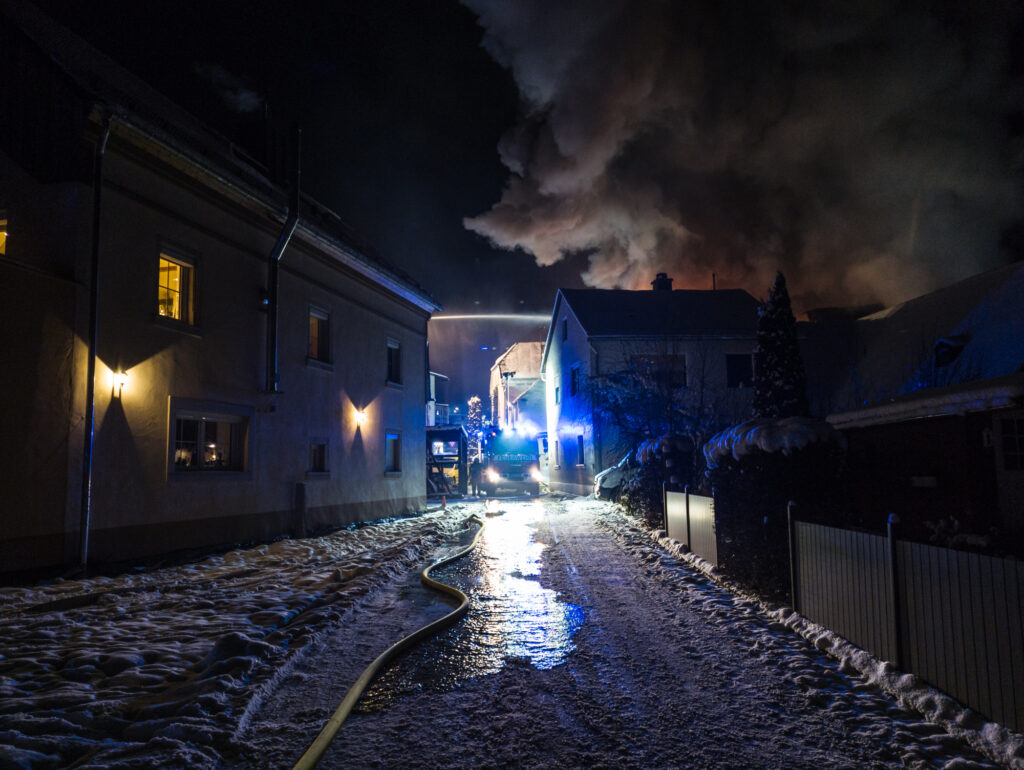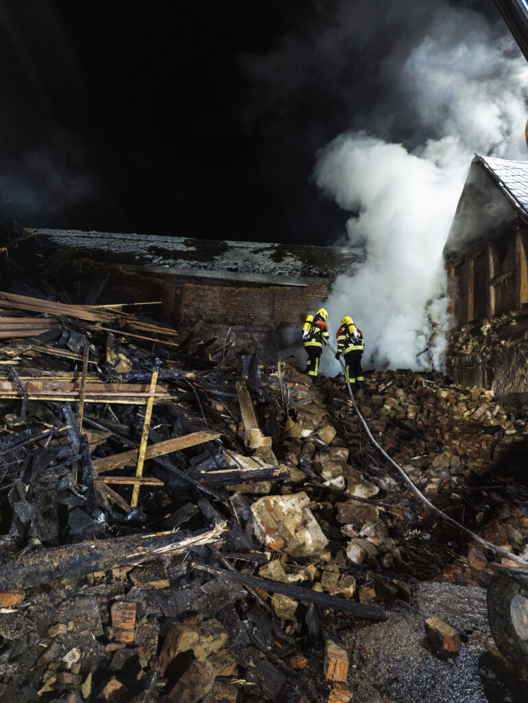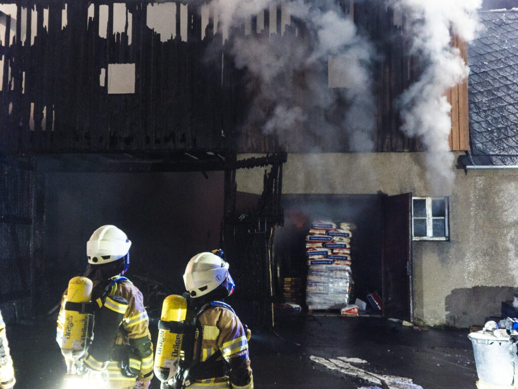 Dank des massiven Löschangriffs von mehreren Seiten konnte die Ausbreitungsgefahr gestoppt werden. Das Löschen des Brands in der Scheune gestaltete sich jedoch schwierig, da keine direkte Löschwasserabgabe auf den Brandherd möglich war. Ein Innenangriff war aufgrund Einsturzgefahr zu gefährlich. In der Scheune waren Holz und Pellets gelagert, die den Flammen ausreichend Nahrung boten.