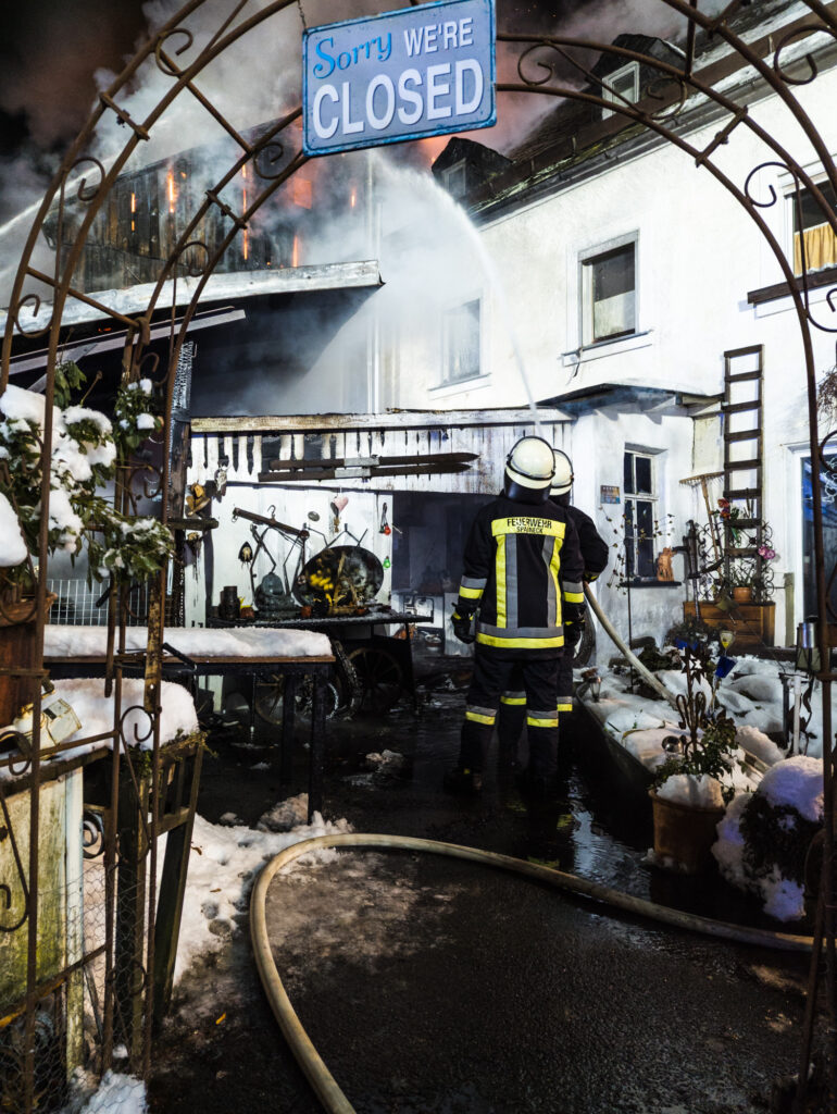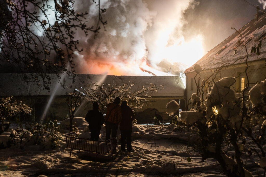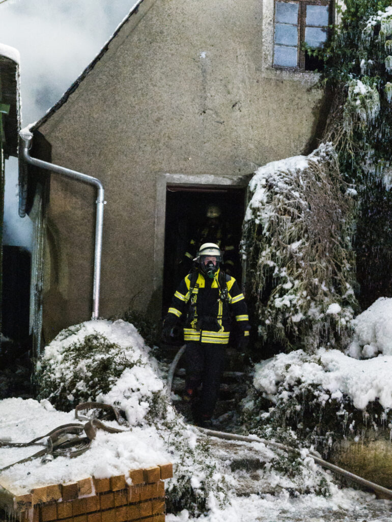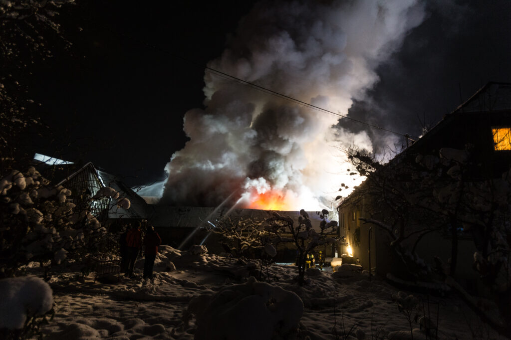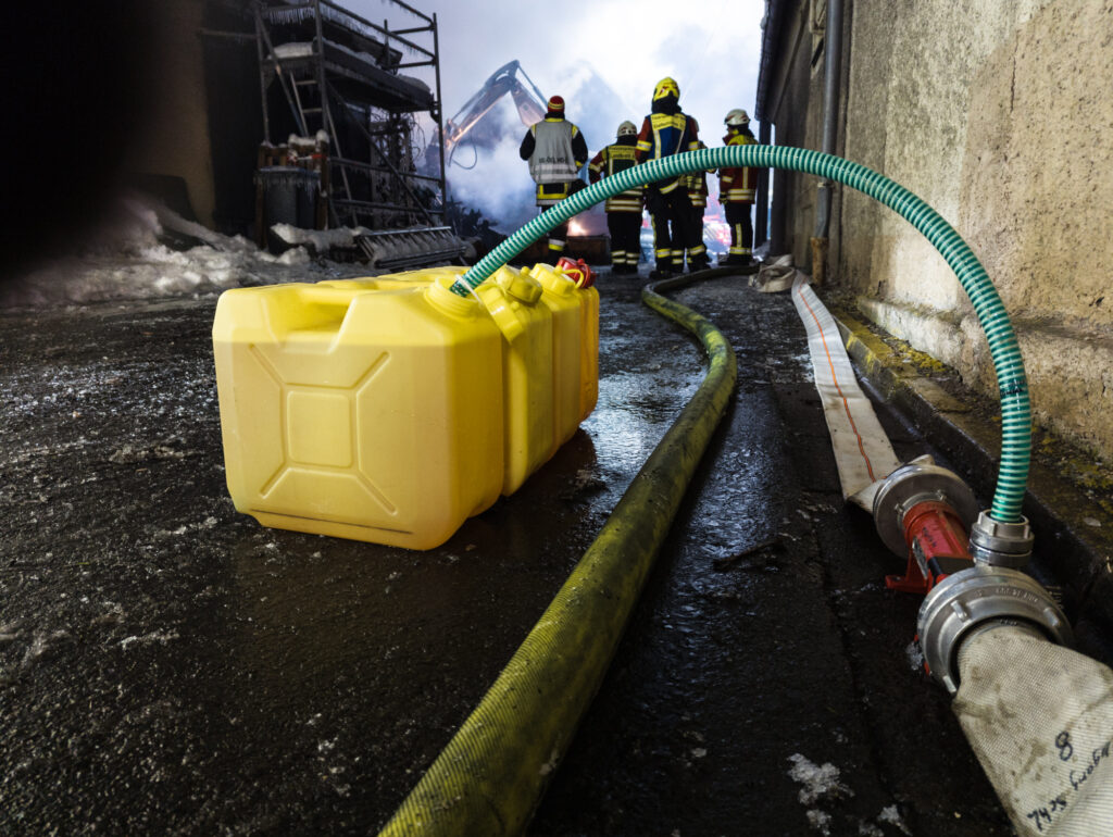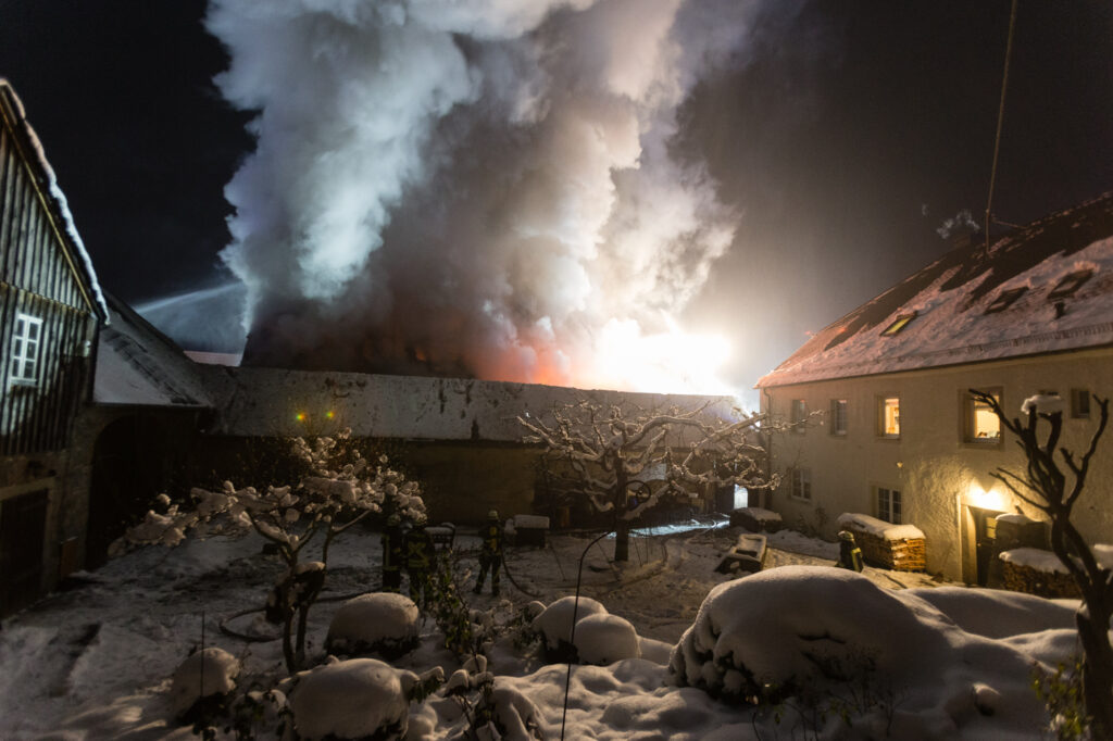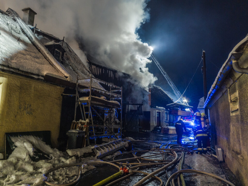 Dank des massiven Löschangriffs von mehreren Seiten konnte die Ausbreitungsgefahr gestoppt werden. Das Löschen des Brands in der Scheune gestaltete sich jedoch schwierig, da keine direkte Löschwasserabgabe auf den Brandherd möglich war. Ein Innenangriff war aufgrund Einsturzgefahr zu gefährlich. In der Scheune waren Holz und Pellets gelagert, die den Flammen ausreichend Nahrung boten.