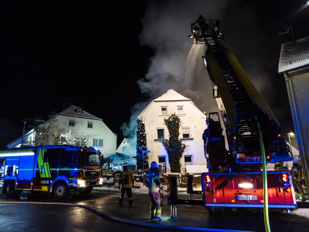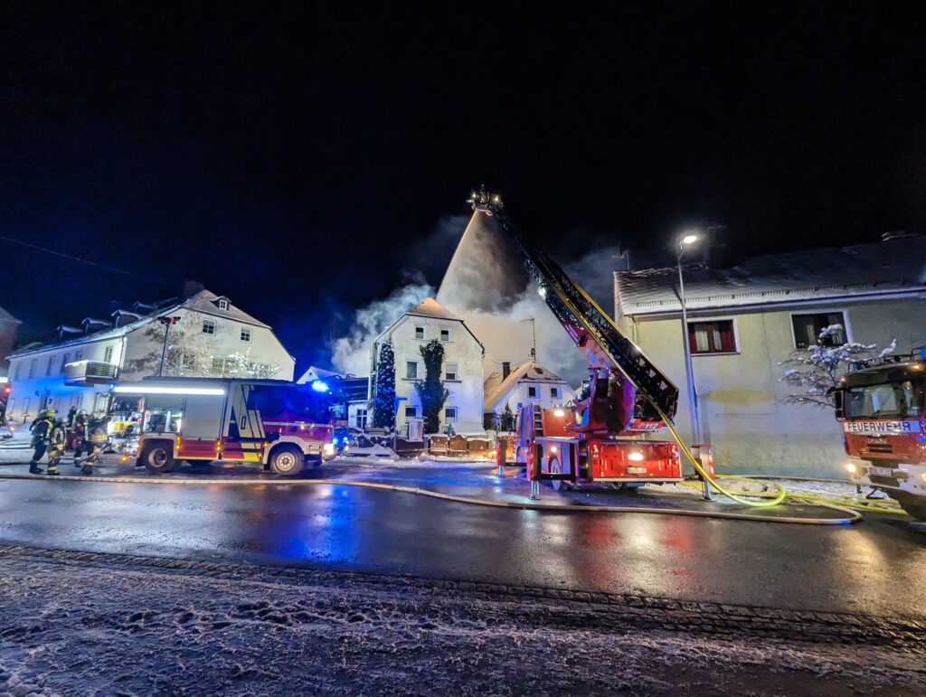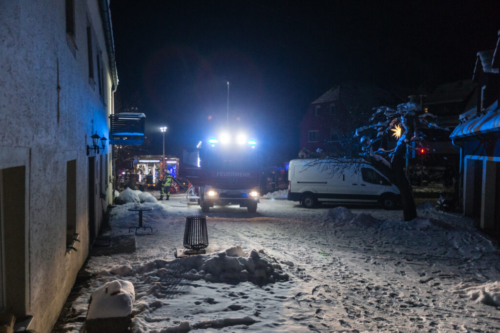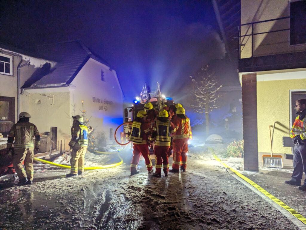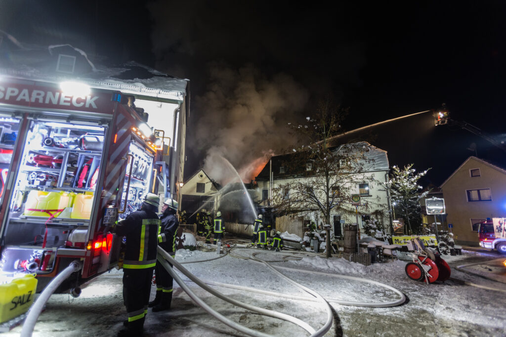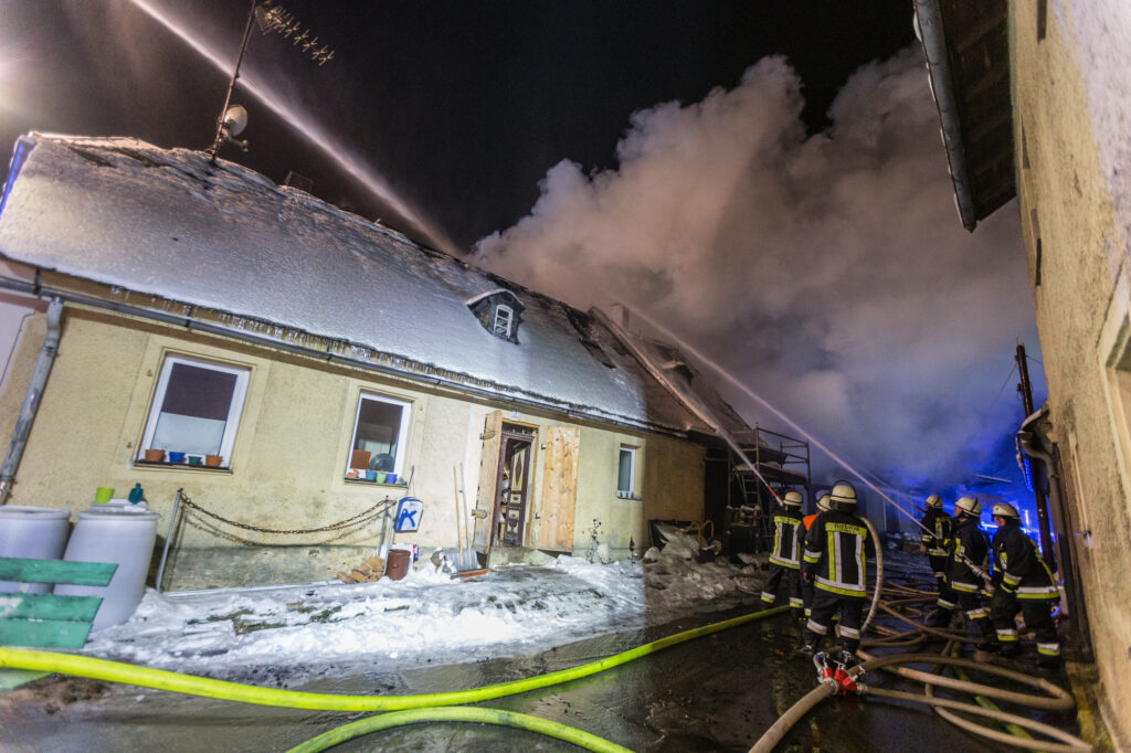 Sofort wurde mit dem Löschangriff begonnen, um die Ausbreitung einzudämmen. Außerdem erfolgten Nachalarmierungen für eine zweite Drehleiter, die Atemschutzsammelstelle samt dem Löschzug 5 und weitere umliegende Feuerwehren zur Sperrung der Straßen nach Weissdorf.