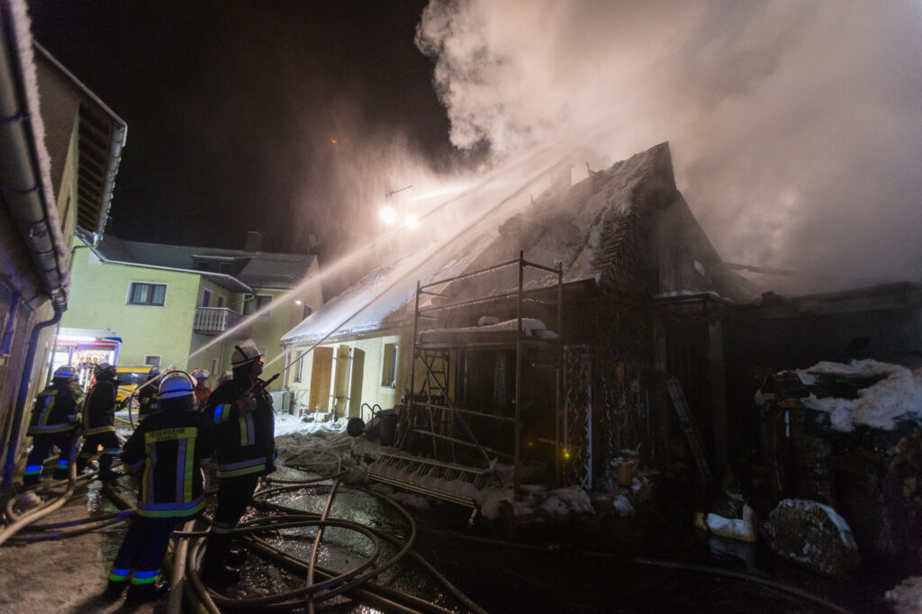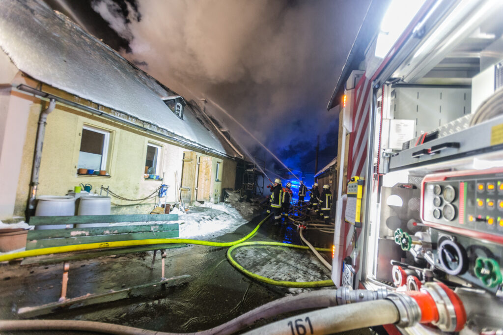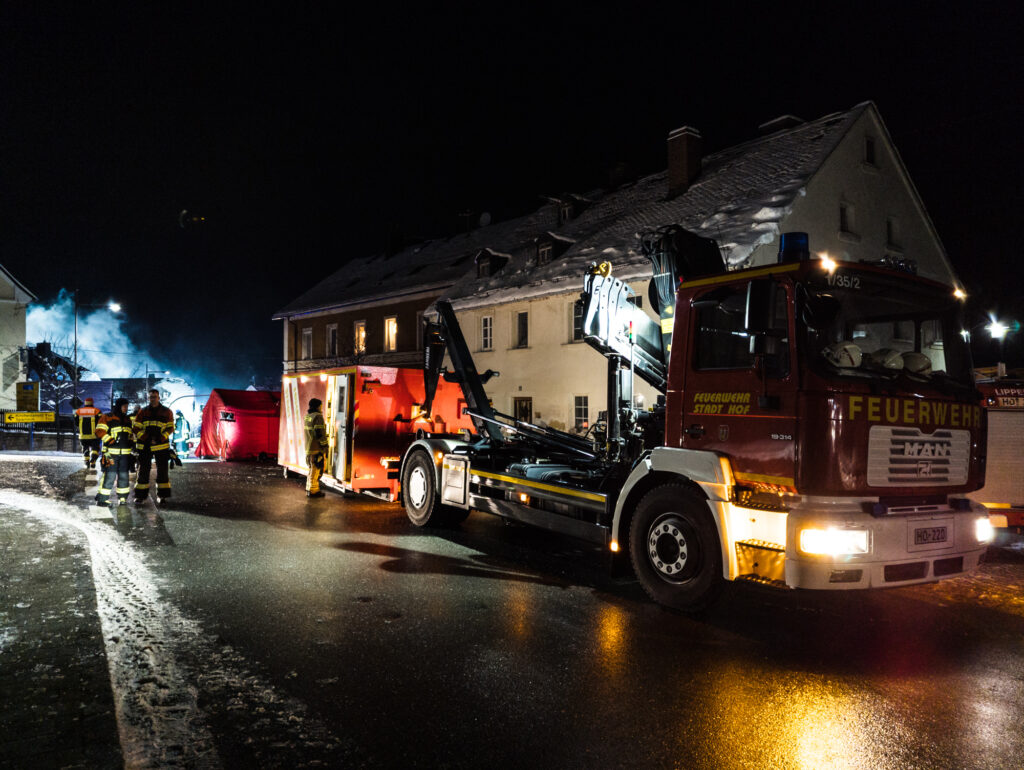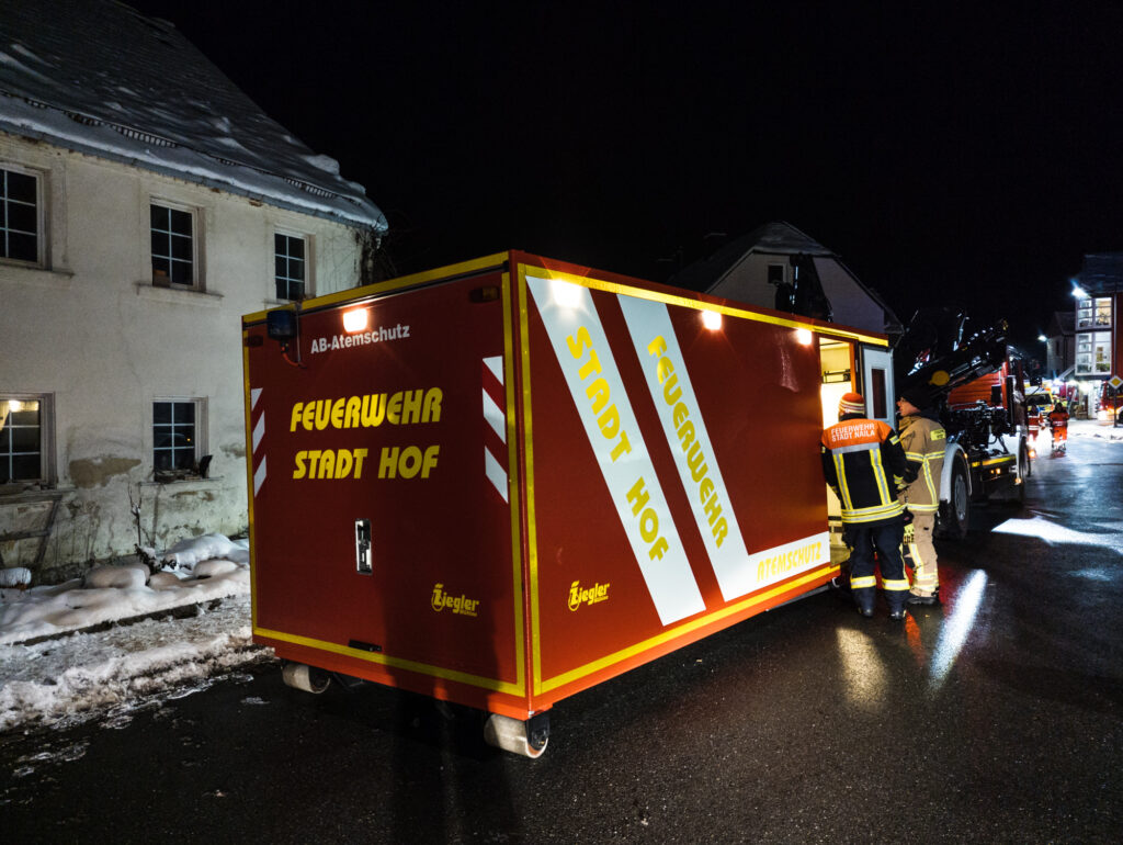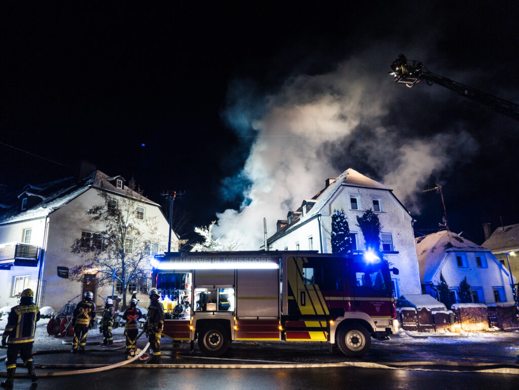 Sofort wurde mit dem Löschangriff begonnen, um die Ausbreitung einzudämmen. Außerdem erfolgten Nachalarmierungen für eine zweite Drehleiter, die Atemschutzsammelstelle samt dem Löschzug 5 und weitere umliegende Feuerwehren zur Sperrung der Straßen nach Weissdorf.