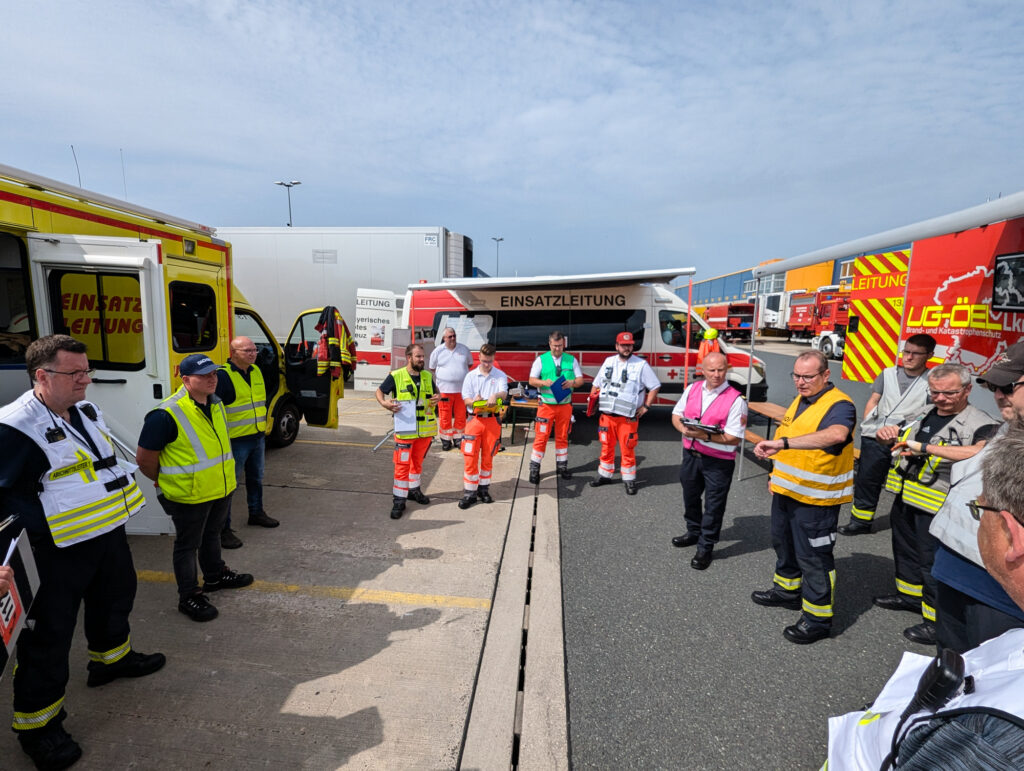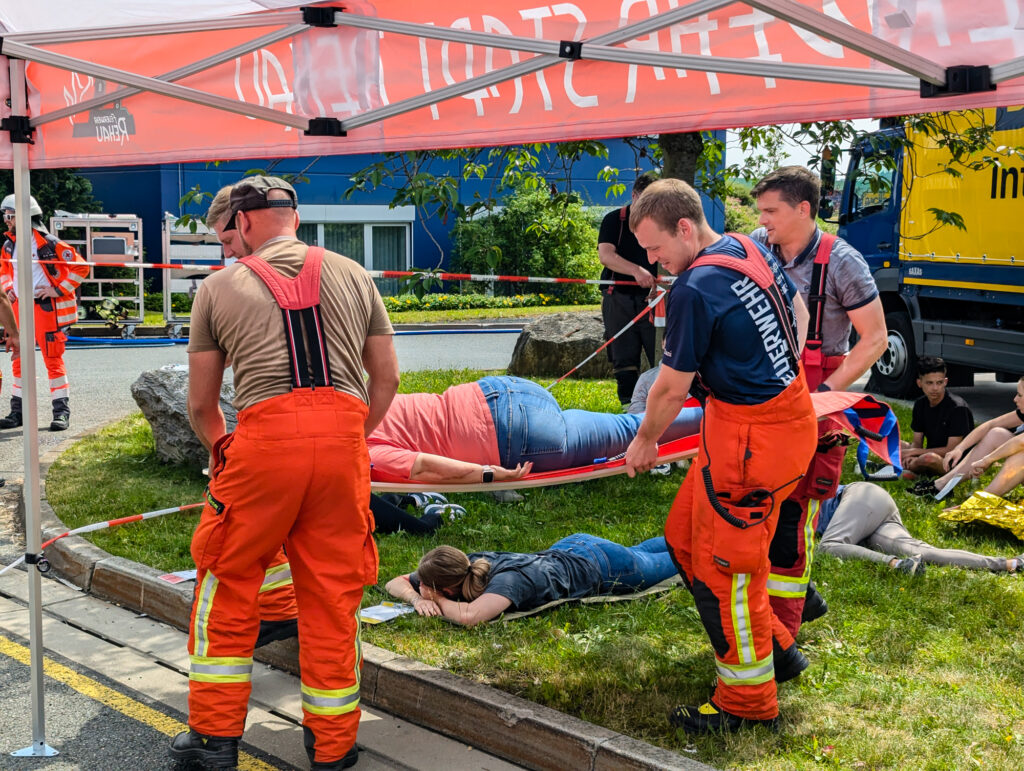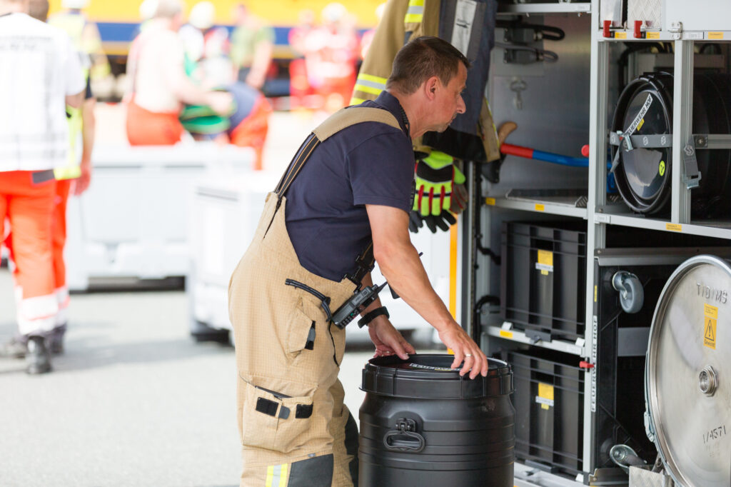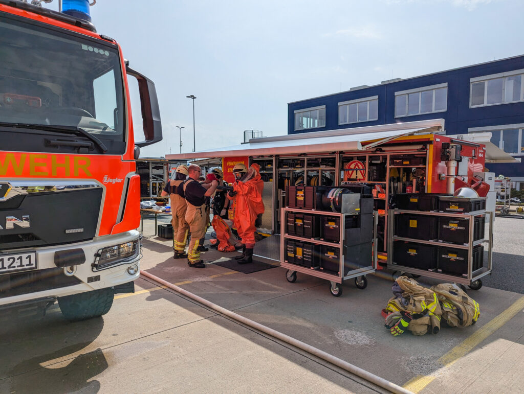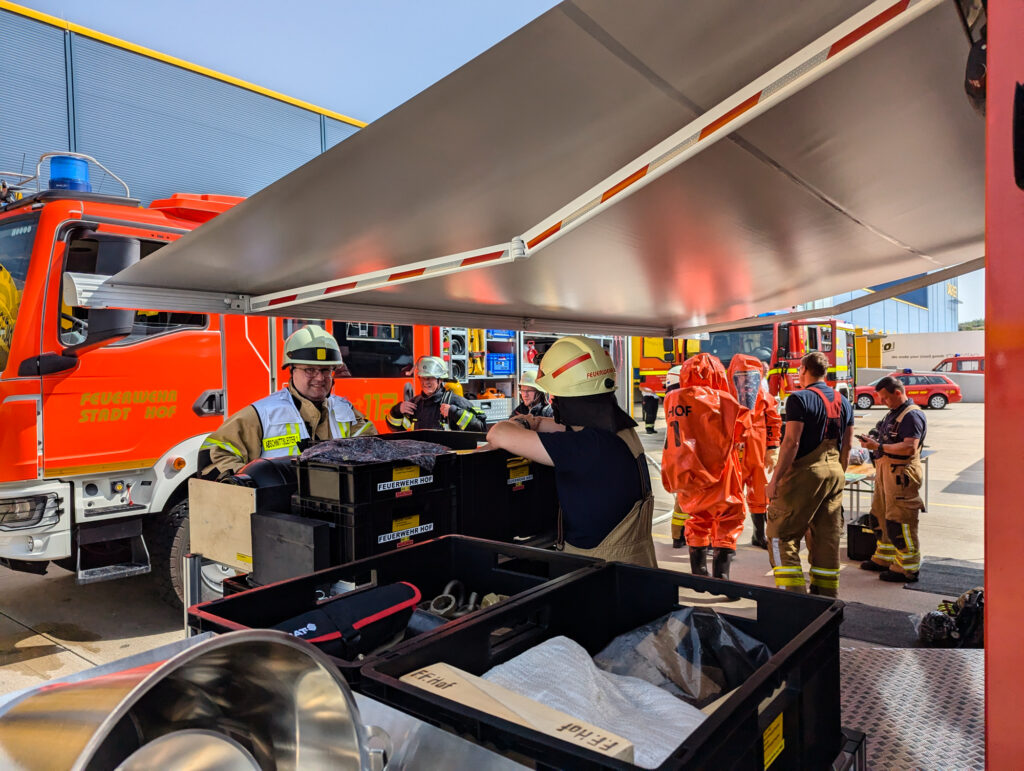 Der schweißtreibende Einsatz bei sommerlich heißen Temperaturen zog sich über mehrere Stunden, bis letztlich alle Verletzten versorgt und die Gefahrstoffe gesichert waren. Bei der anschließenden Nachbesprechung zeigte sich Übungsleiter KBM Heiko Rödel zufrieden mit dem Ablauf und der guten Zusammenarbeit aller beteiligten Organisationen.