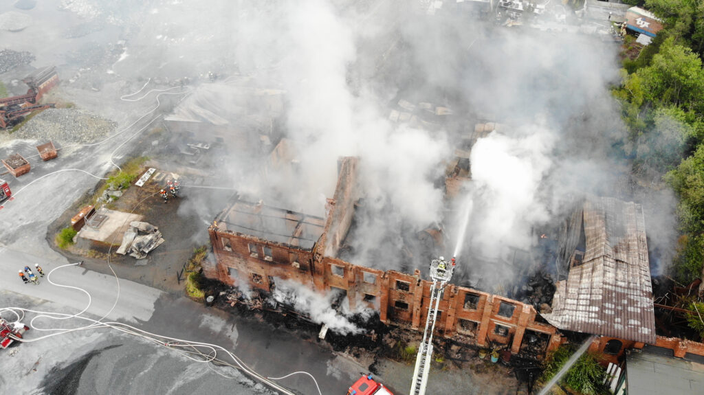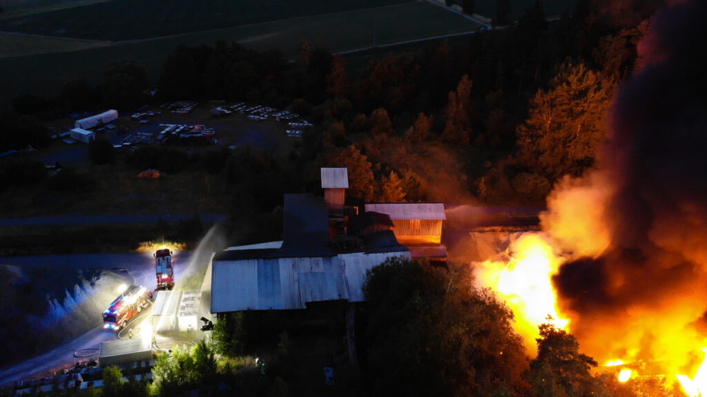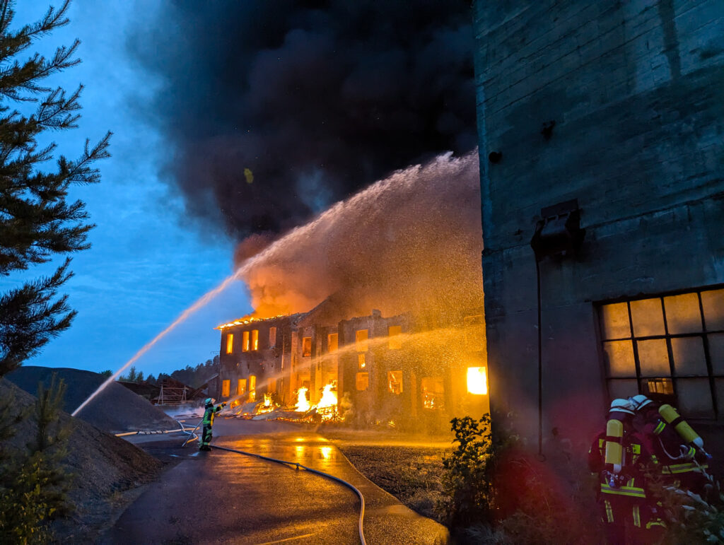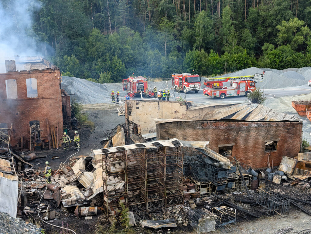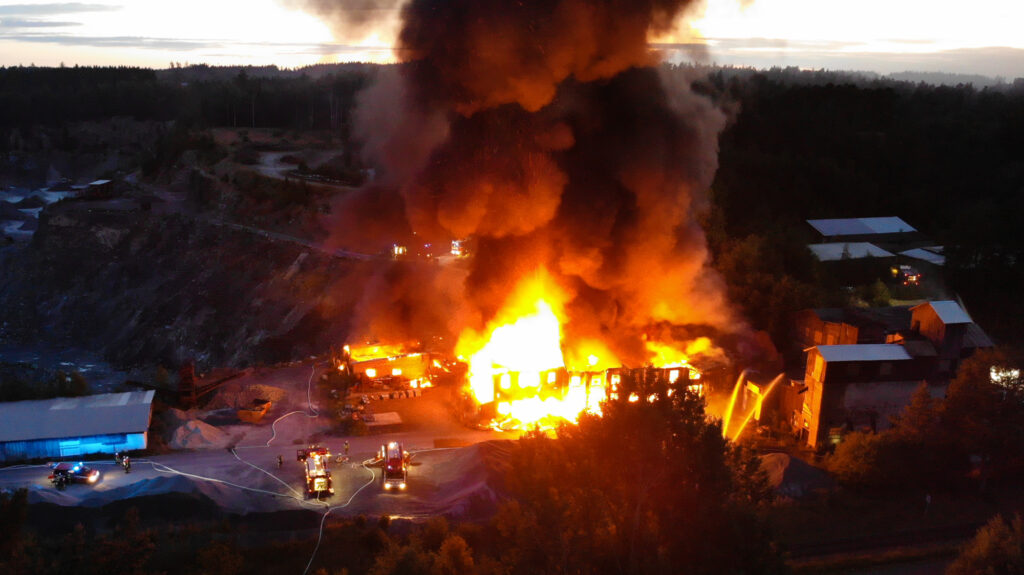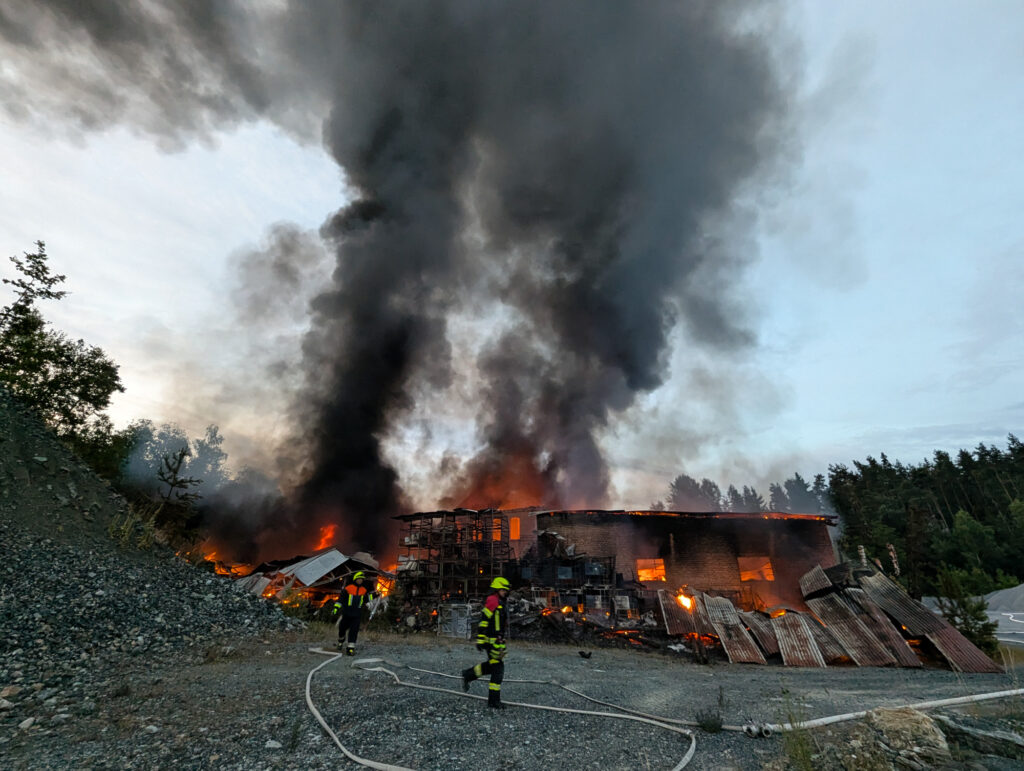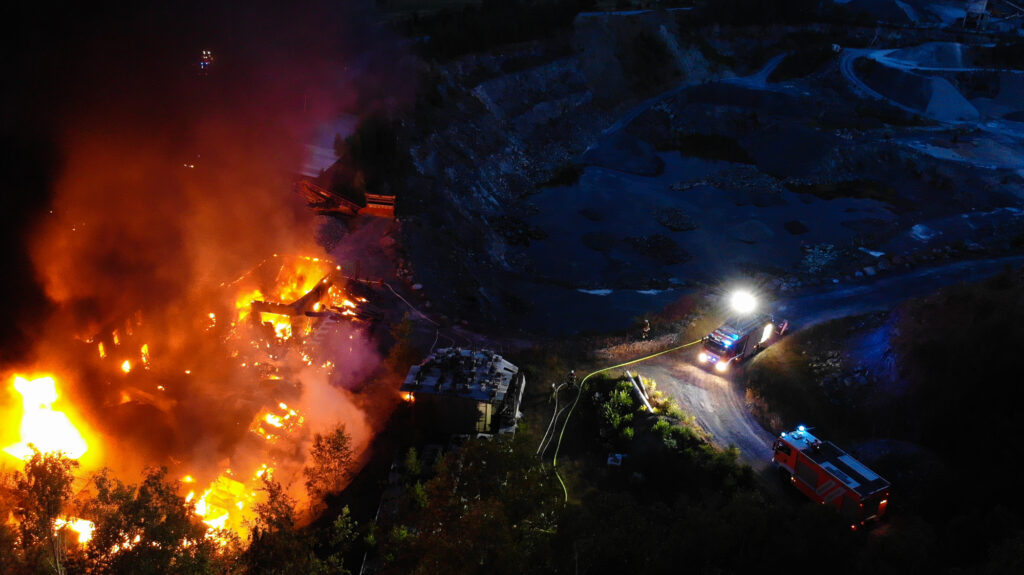 In der Nacht zum Sonntag kam es auf dem Gelände des Steinbruchs in Wurlitz zu einem Großbrand, der bereits aus großer Entfernung durch Feuerschein und eine dichte Rauchsäule sichtbar war.