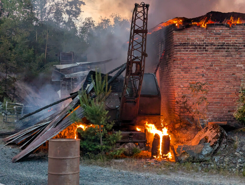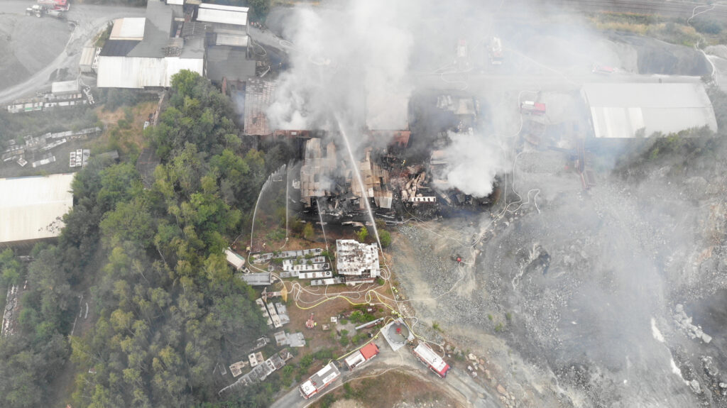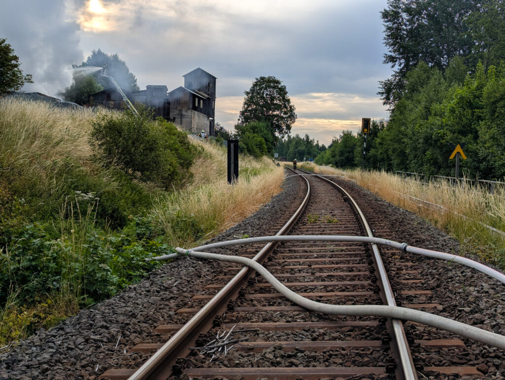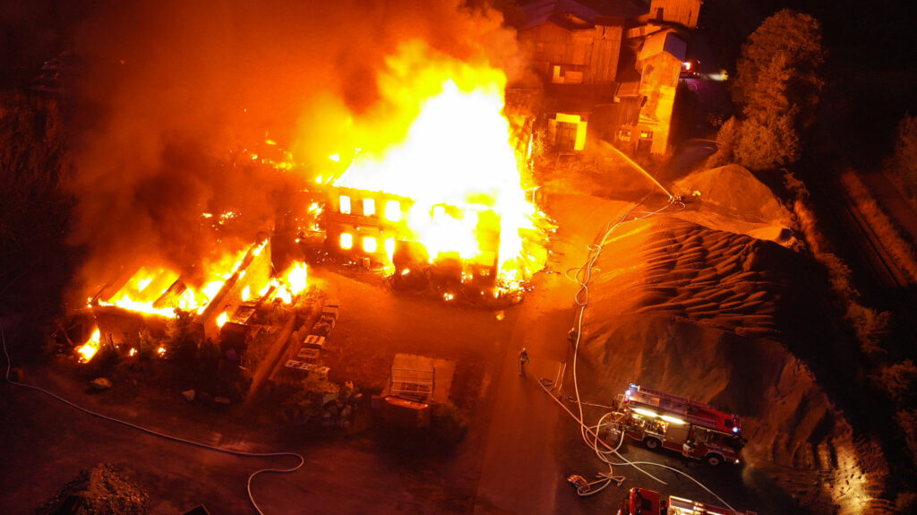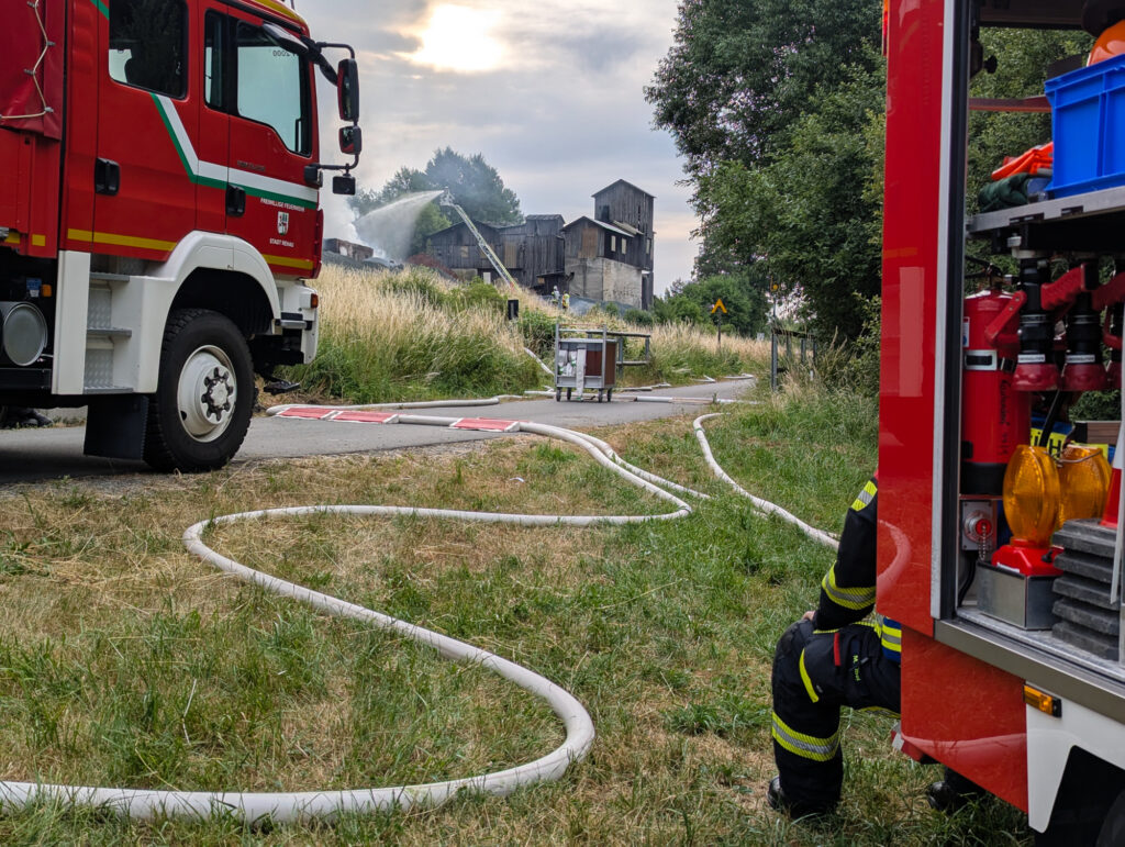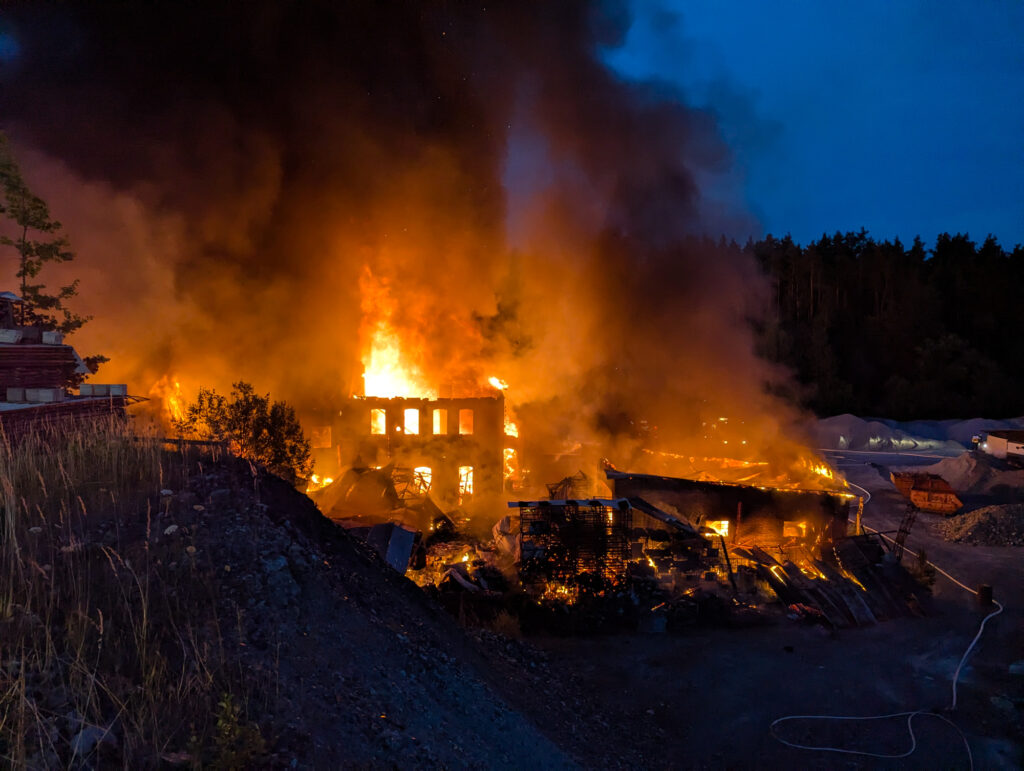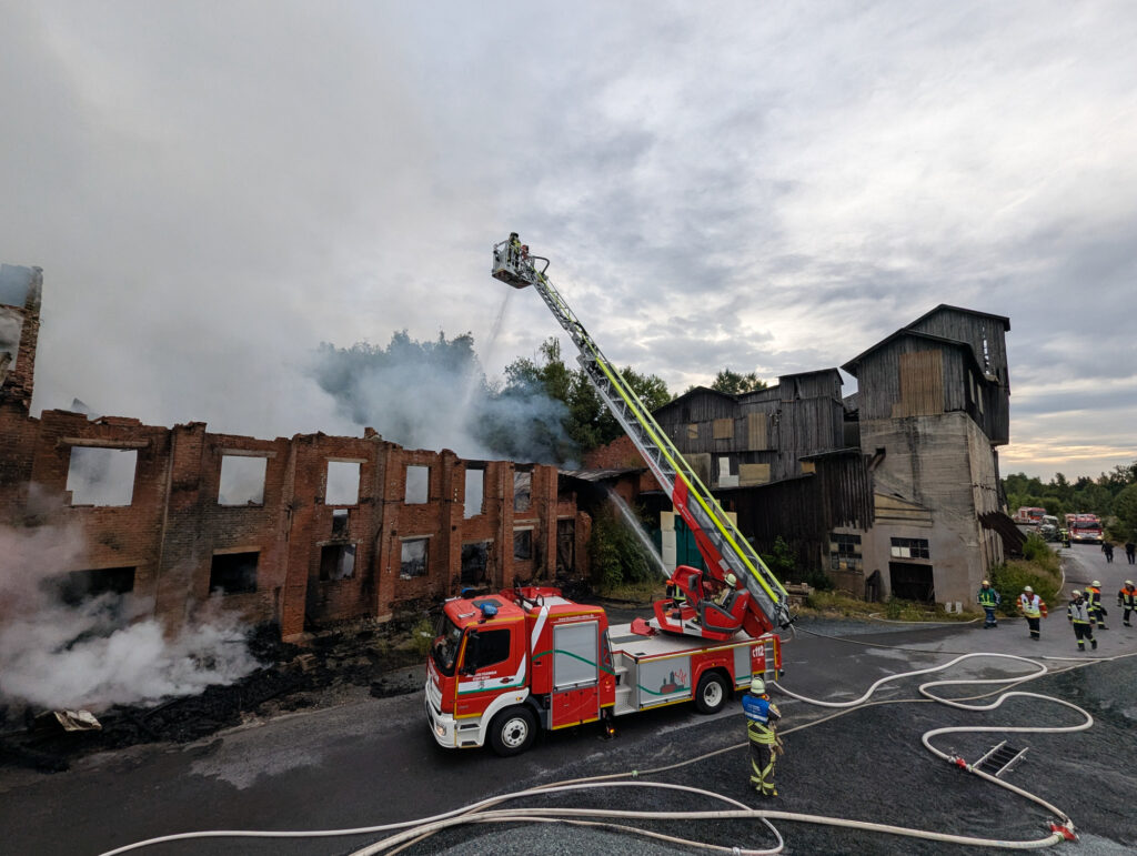 In der Nacht zum Sonntag kam es auf dem Gelände des Steinbruchs in Wurlitz zu einem Großbrand, der bereits aus großer Entfernung durch Feuerschein und eine dichte Rauchsäule sichtbar war.