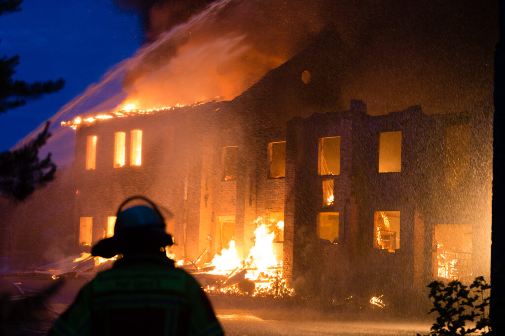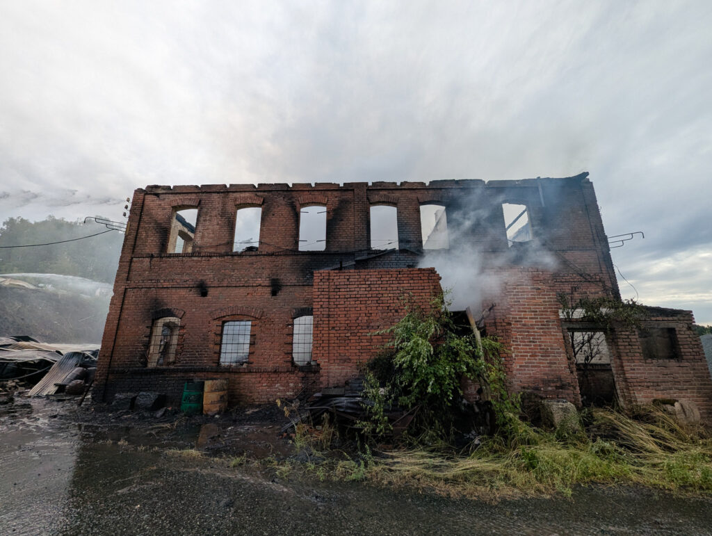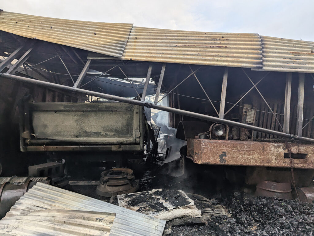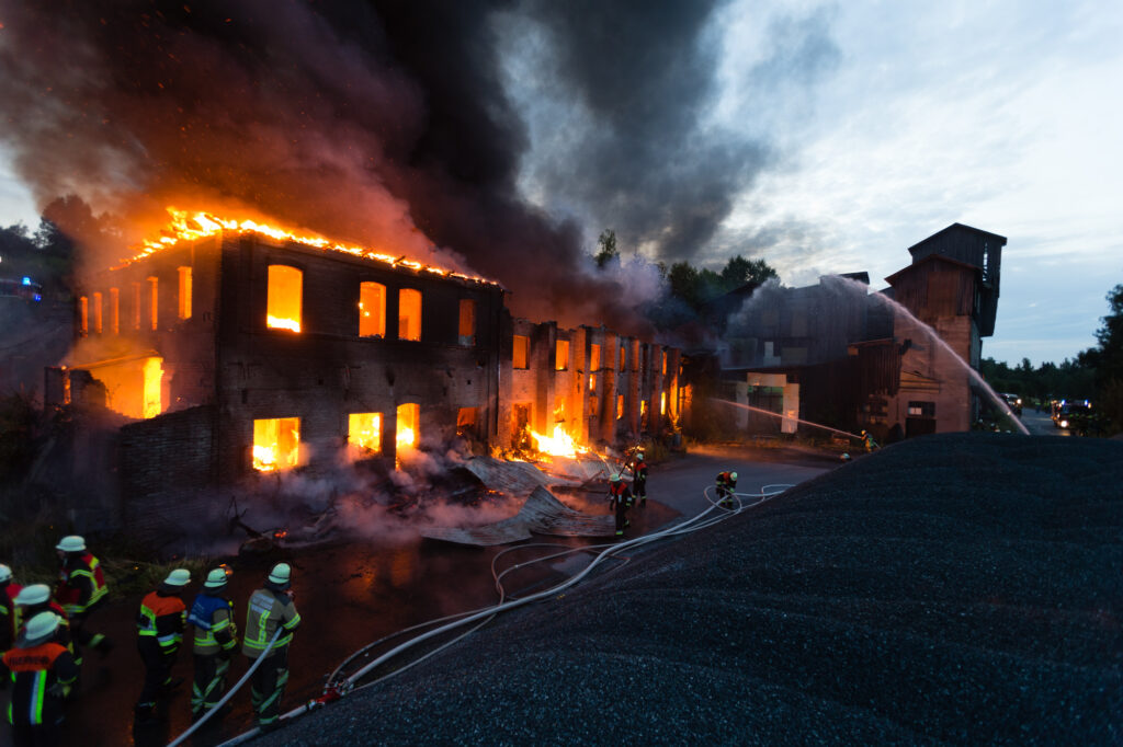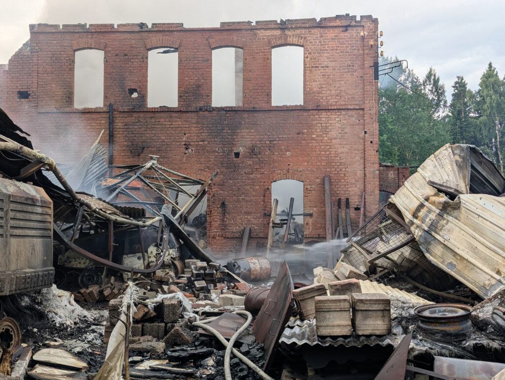 Beim Eintreffen der ersten Kräfte stand ein Gebäudekomplex bereits in Vollbrand, darunter auch eine Maschinenhalle mit mehreren untergestellten Fahrzeugen. Aus einem brennenden 5000-Liter-Kraftstofftank im Gebäude trat eine heftige Stichflamme aus.