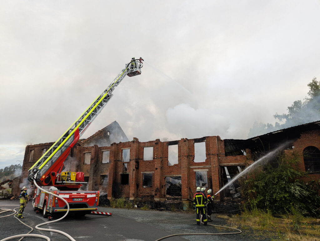 Insgesamt waren rund 200 Einsatzkräfte von Feuerwehr, THW, BRK und Polizei über sieben Stunden lang im Einsatz. Die Feuerwehren Rehau und Wurlitz waren darüber hinaus noch weiter zum Ablöschen von Glutnestern und zur Brandnachschau tätig.