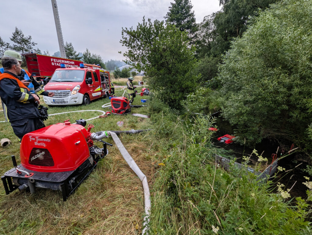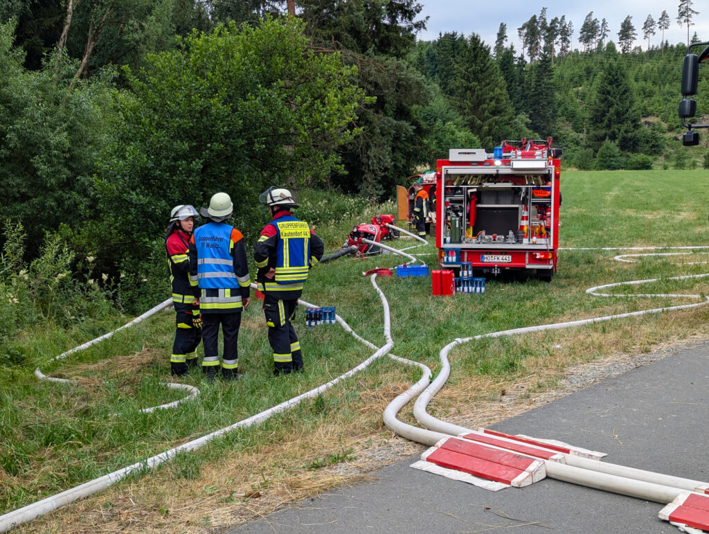 Zur Gebietsabsicherung wurde der Löschzug 3 (Helmbrechts, Zell, Wüstenselbitz-Burkersreuth) auf Bereitschaft im Feuerwehrhaus Rehau stationiert.