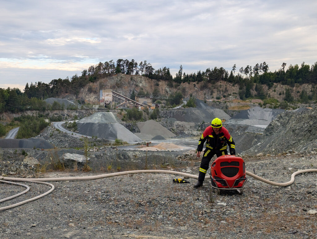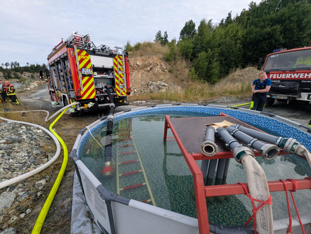 Da akute Ausbreitungsgefahr auf angrenzende Vegetation bestand, wurde umgehend ein weiterer Löschzug nachalarmiert. Vorsorglich wurden auch sämtliche Sprengstofflager auf dem Gelände geräumt.