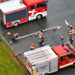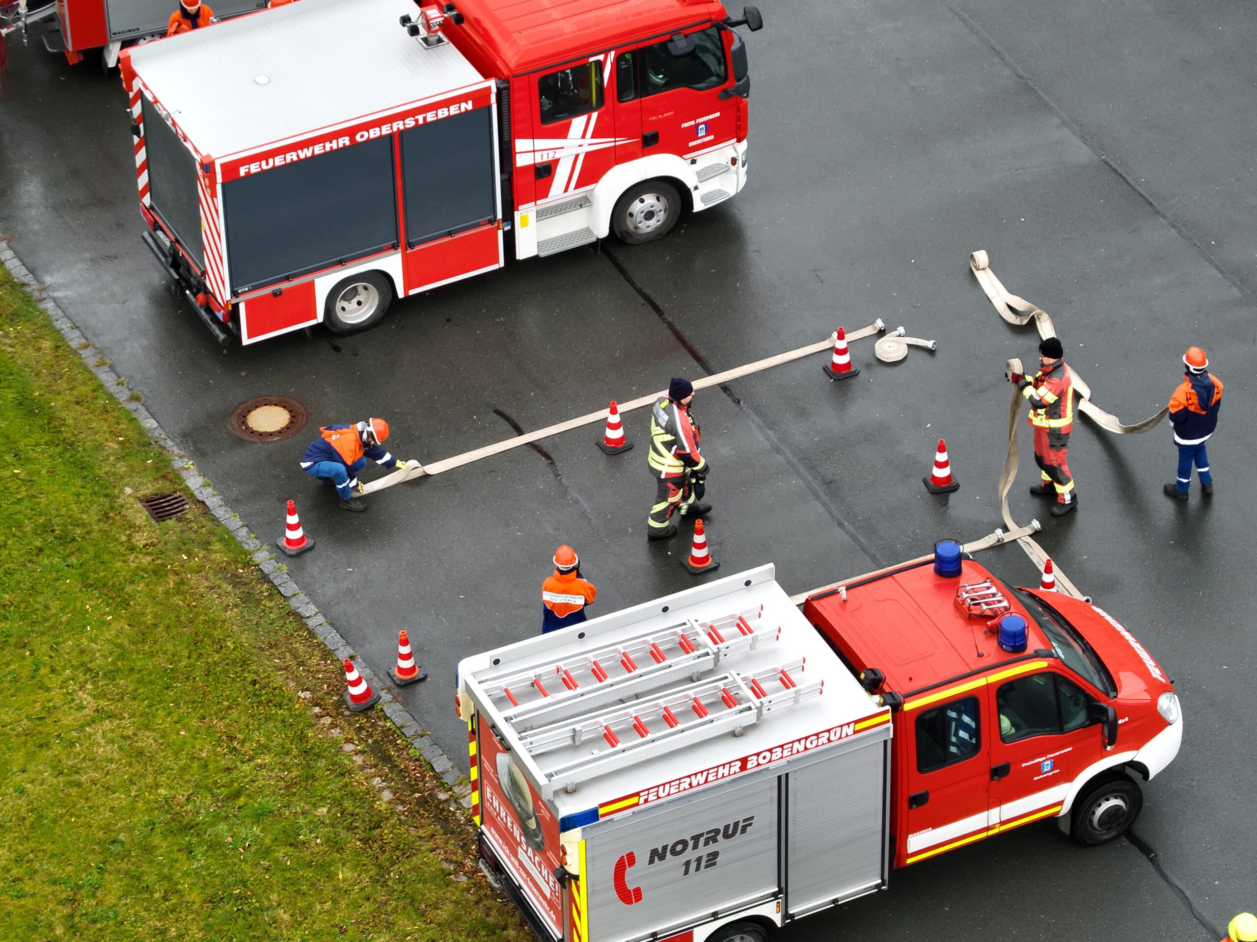 Bei Stufe 3 galt es zusätzlich einen vollständigen Löschangriff zu simulieren, inklusive Schaumeinsatz und dem richtigen Umgang mit Funkrufnamen und Fahrzeugtechnik.