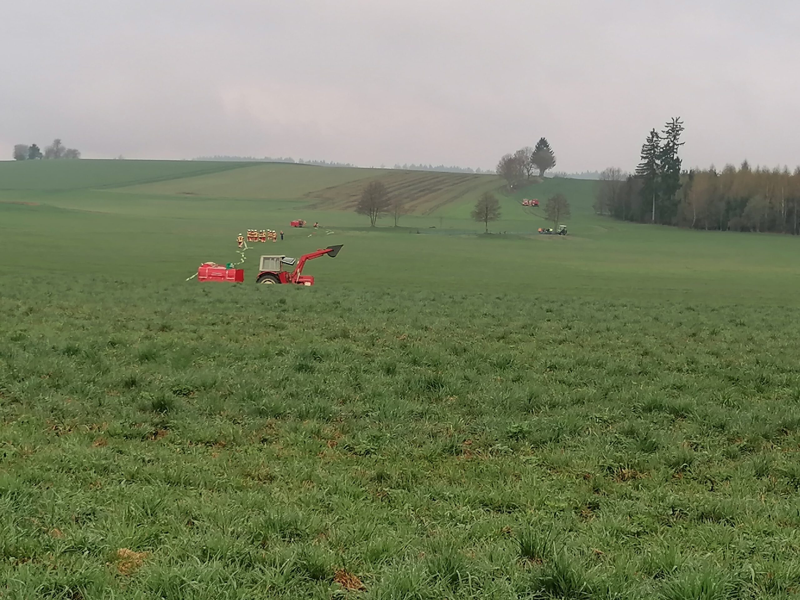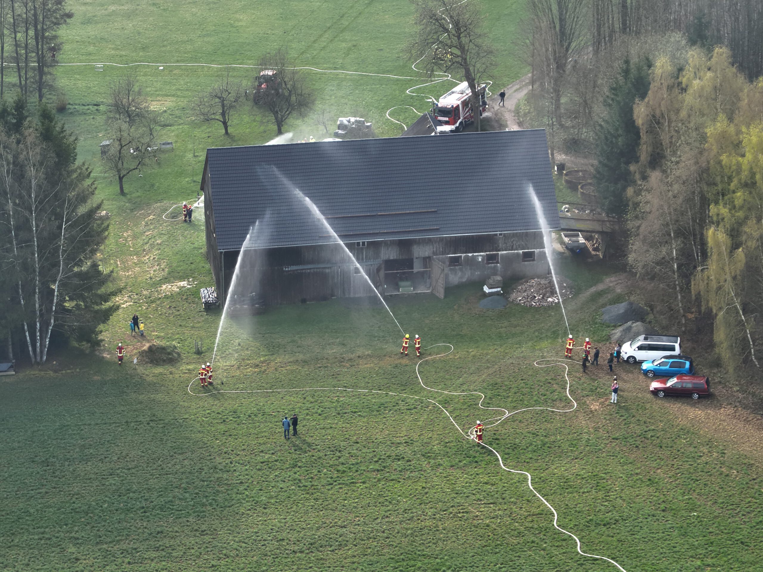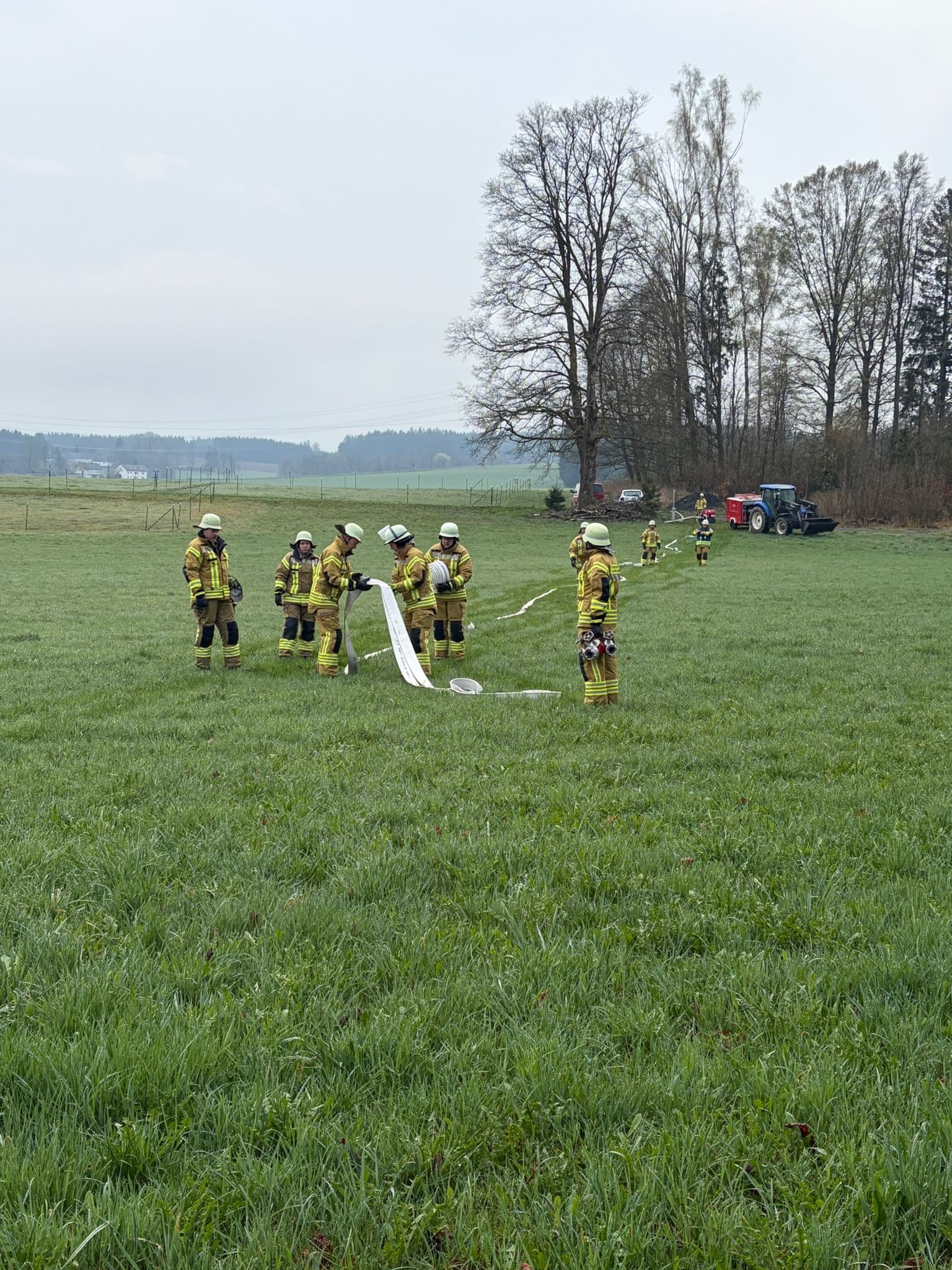 Am Sonntag, 19.04.2026 fand im Münchberger Ortsteil Hildbrandsgrün – Wäldlein für die Feuerwehren Hildbrandsgrün, Poppenreuth-Plösen, Unfriedsdorf, Wüstenselbitz-Burkersreuth, Dreschersreuth und Ottengrün eine Einsatzübung statt. Ebenfalls an der Einsatzstelle war ein Notfallmanager der Deutschen Bahn sowie Kreisbrandinspektor Reinhard Schneider und Kreisbrandmeister Oliver Heinold. Beobachtet wurde die Übung auch durch das Drohnenteam der Unterstützungsgruppe Örtliche Einsatzleitung.